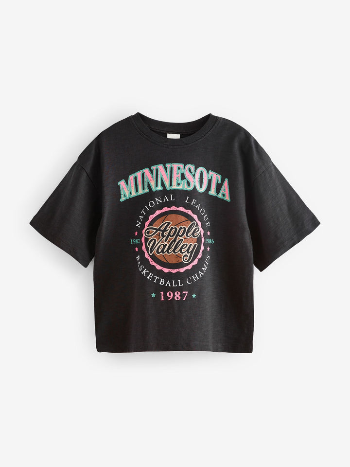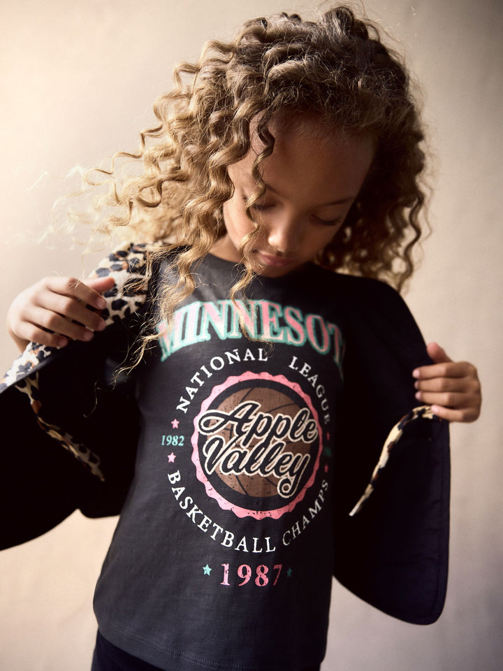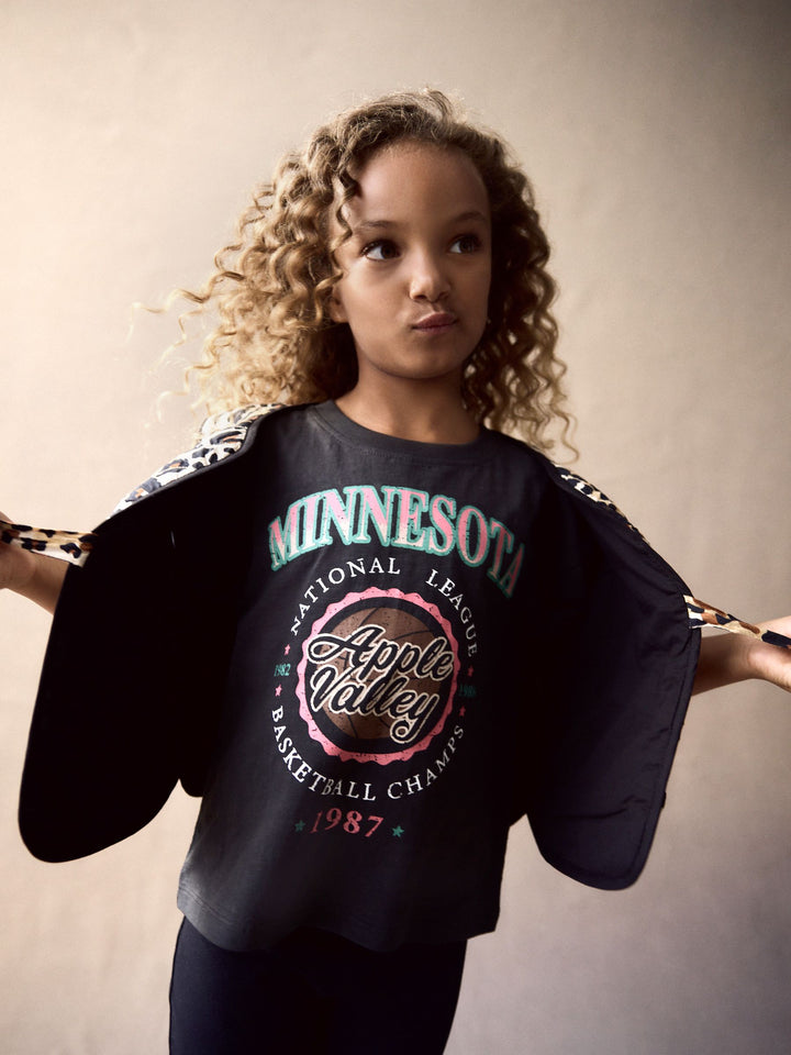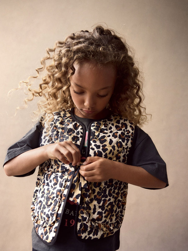 She'll love this 2-piece set, featuring a vintage-inspired pure cotton t-shirt with a Minnesota graphic print, alongside a leopard print gilet with frill detailing to the pockets, finished with a tie fastening. 2-piece set 100% cotton t-shirt Minnesota graphic print Leopard print gilet Gilet and T-shirt 100% Cotton. Country of Origin: India Better Cotton - By choosing our cotton products, you're supporting our investment in Better Cotton's mission to help cotton farming communities survive and thrive while protecting and restoring the environment. This product is sourced via a system of mass balance and therefore may not contain Better Cotton. Learn more at www.next.co.uk/better-cotton