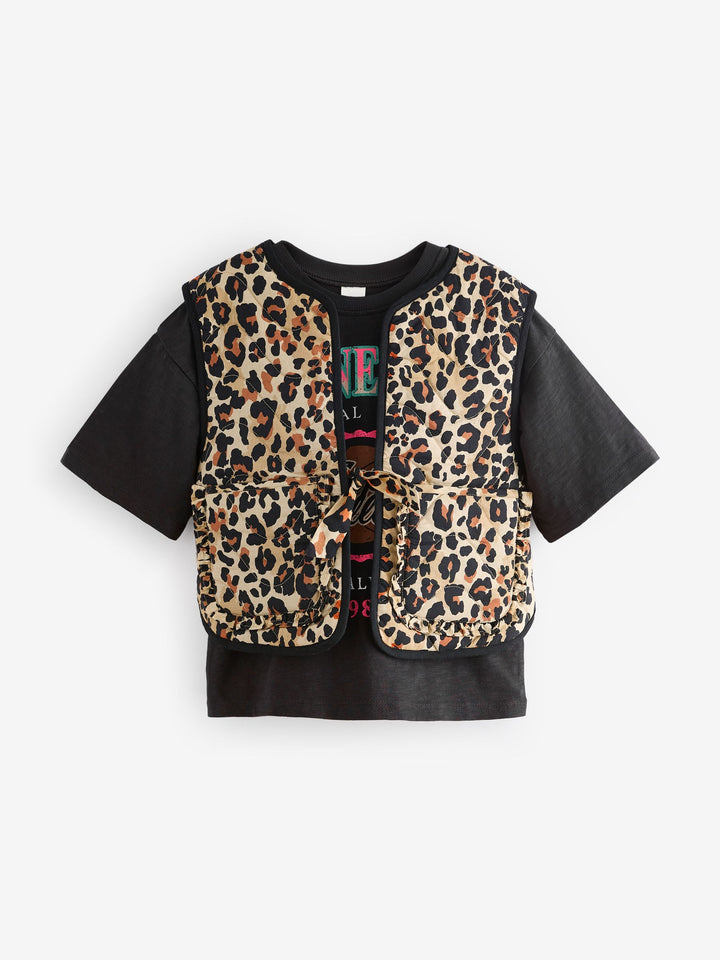 Animal Print 100% Cotton Gilet and T-Shirt Set (3-16yrs)