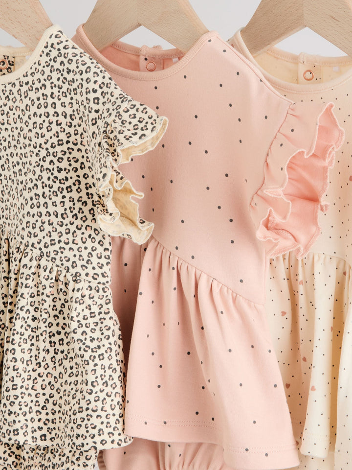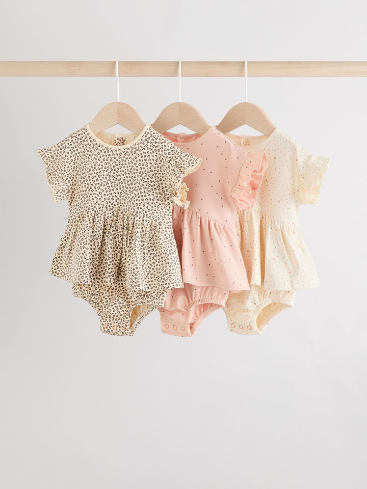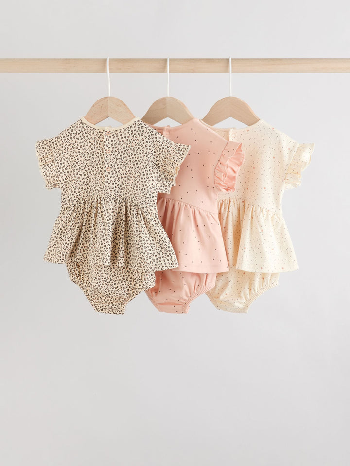 Animal Printed 3 Pack Skirted Baby Rompers