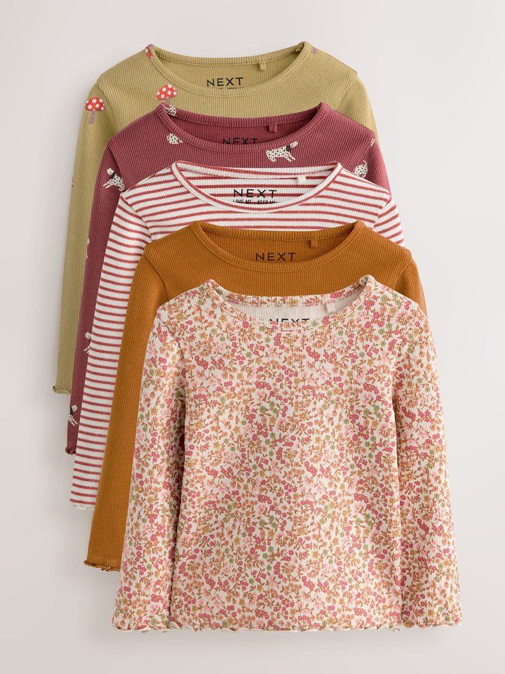 Autumnal Orange Long Sleeve Rib Tops 5 Pack (3mths-7yrs)