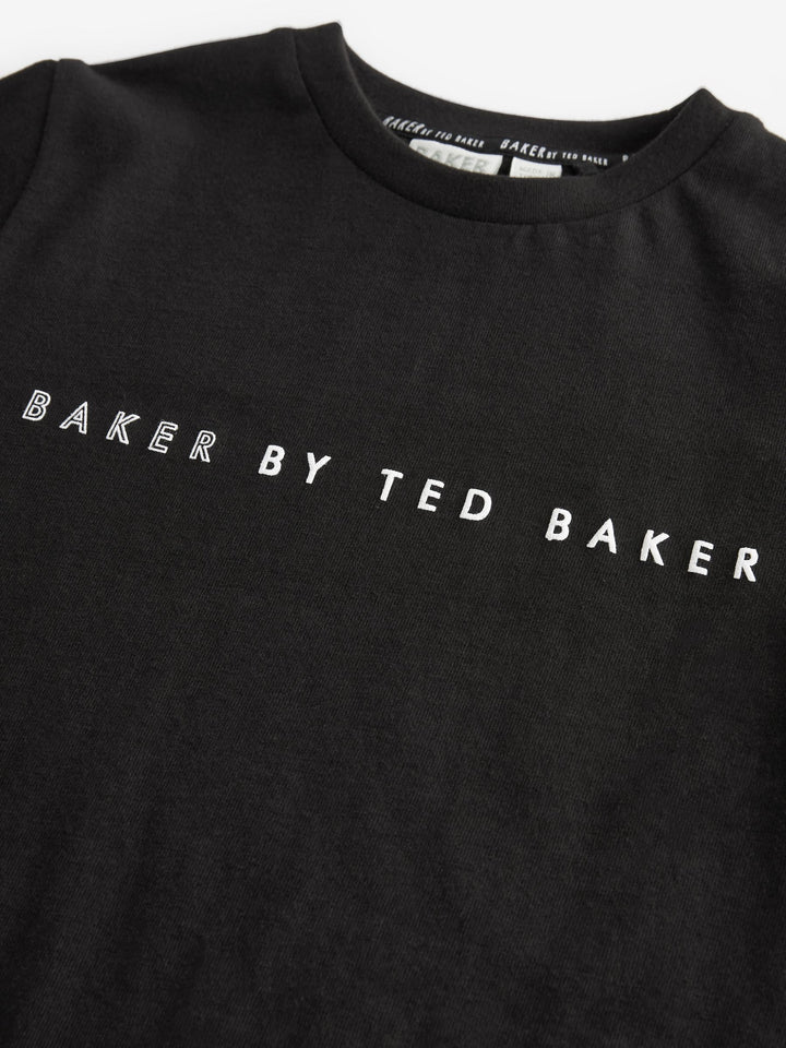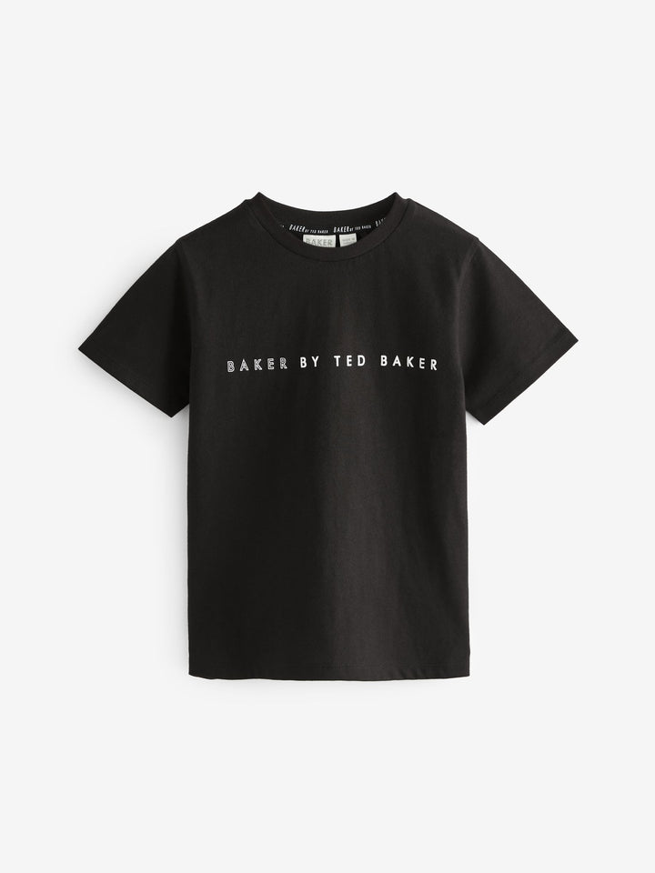 Keep him super casual with this everyday black T-Shirt from Baker by Ted Baker. Made from a soft premium jersey, the casual top features branding on the chest. Pair it with some jeans and trainers for a great playtime look. Crew neck 100% premium jersey cotton Branding across the chest Main 100% Cotton. Rib 95% Cotton, 5% Elastane. Country of Origin: Turkey