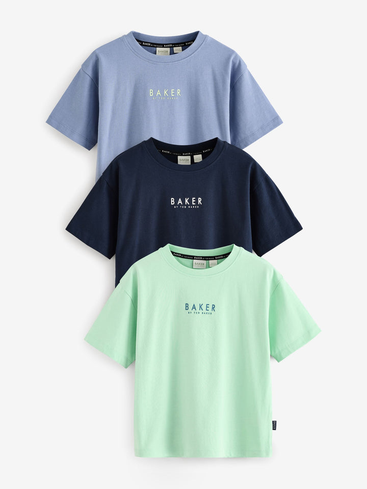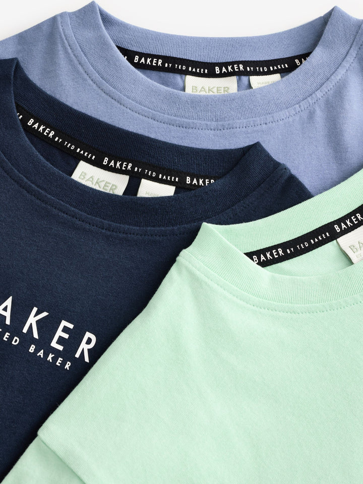 Keeping him cool and comfy, these Baker by Ted Baker t-shirts are a wardrobe must-have. The multipack includes three short sleeve tees each in a different colourway with the iconic branding printed on the front. Made from soft cotton to ensure his comfort throughout the day, they all have a simple crew neck and will be an everyday essential. 3 x T-shirt 100% Cotton. Country of Origin: Bangladesh