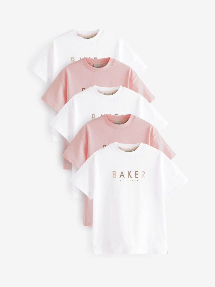Take care of her wardrobe staples with these stylish T-Shirts from Baker by Ted Baker. The multipack includes 5 tops each made from soft and breathable cotton in different colourways. They are all designed with a crew neck fit and the iconic Baker branding across the chest in gold foil. Team them with her favourite shorts and trainers to complete the look. 5 pack Soft cotton fabric Gold foil branding 5 x T-shirt 100% Cotton. Country of Origin: Bangladesh
