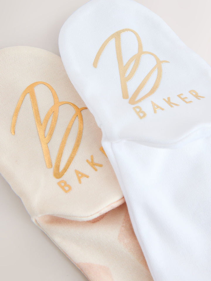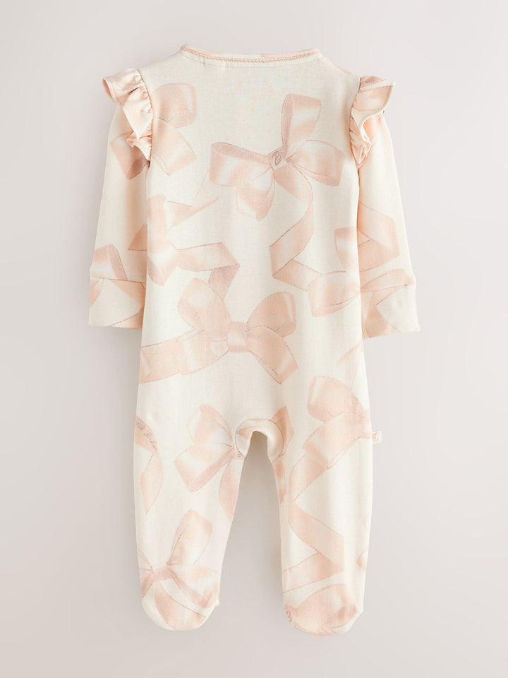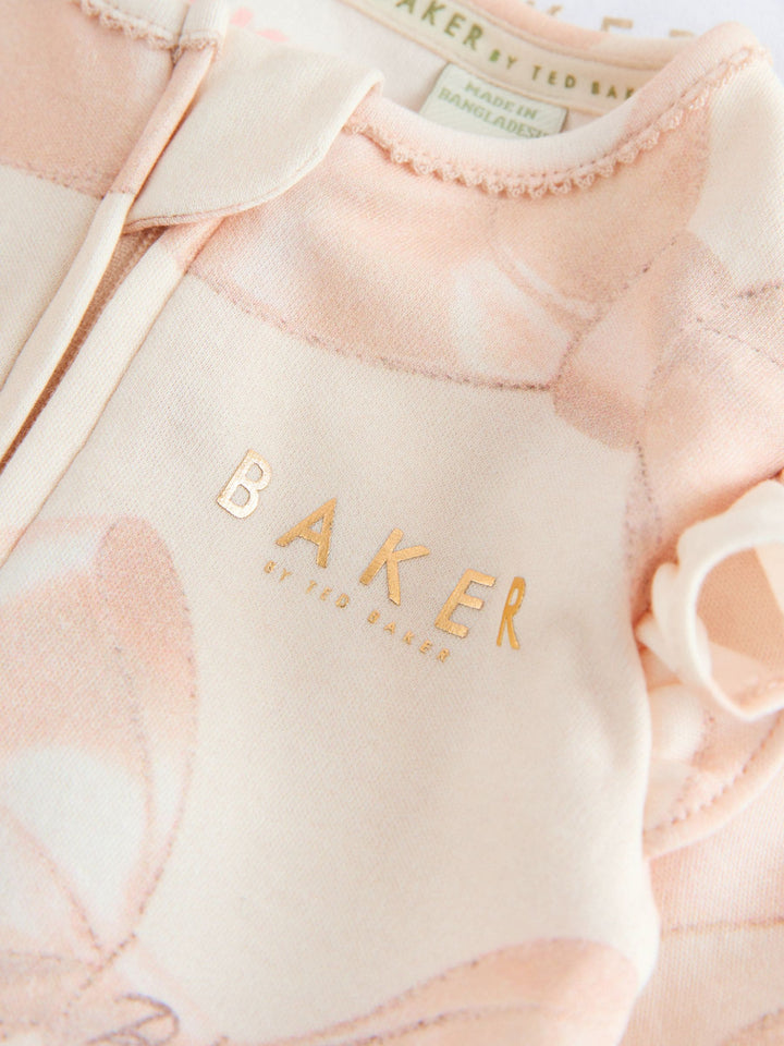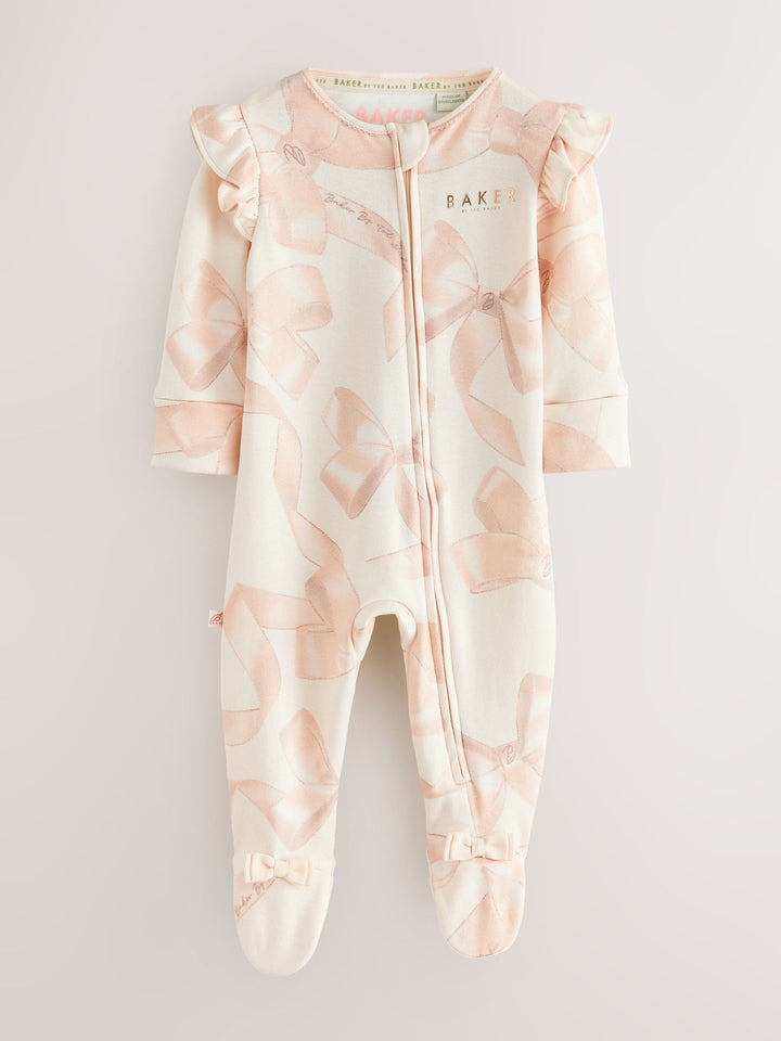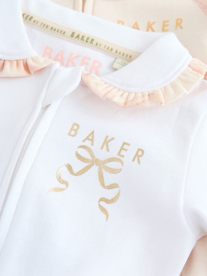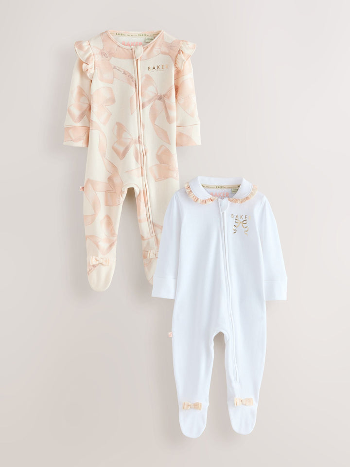 Baker by Ted Baker 2 Pack 100% Cotton Bow Printed Sleepsuits