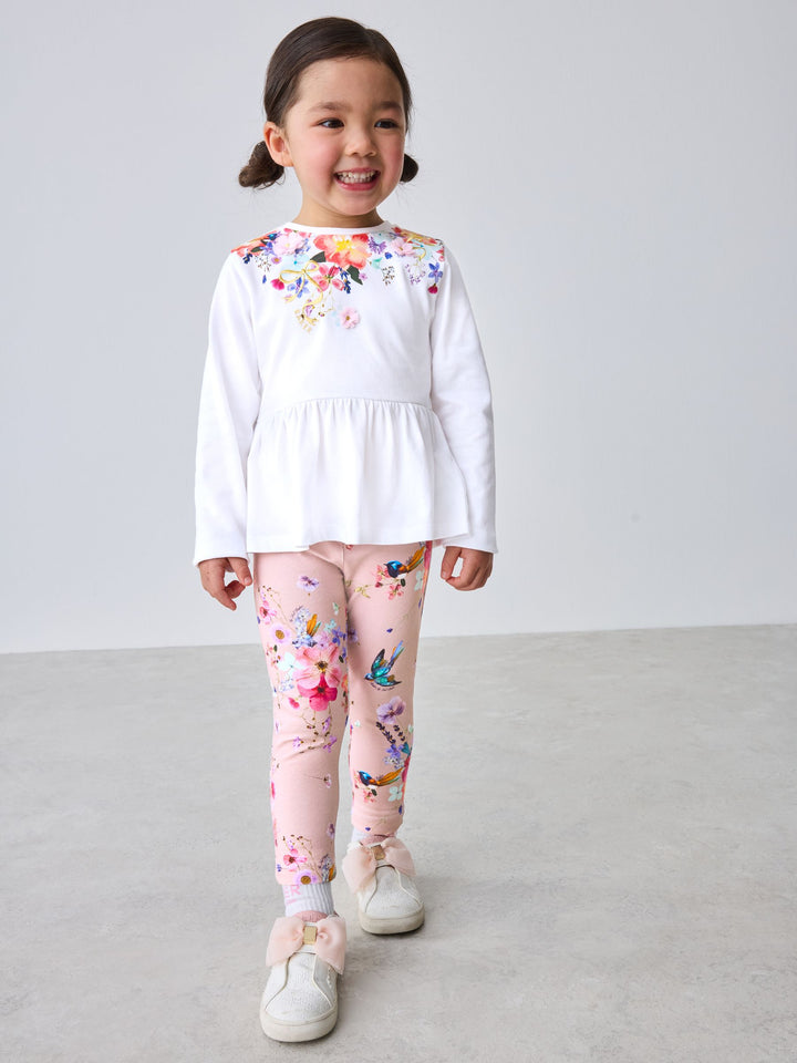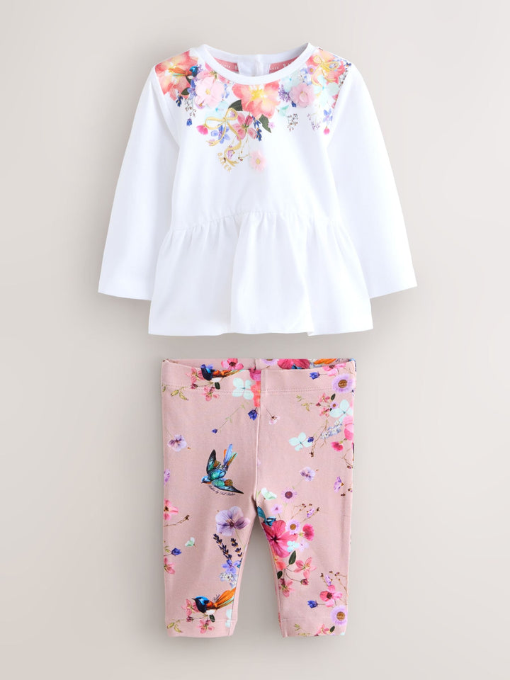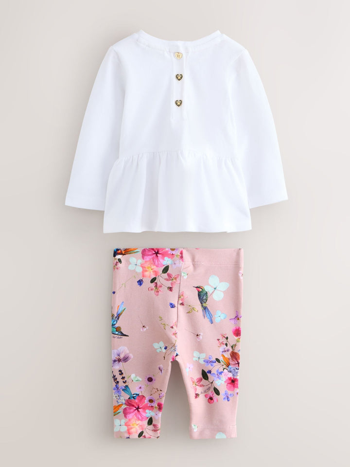 Baker by Ted Baker 2 Piece Pink Peplum T-Shirt & Printed Leggings Set