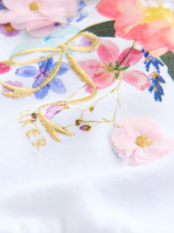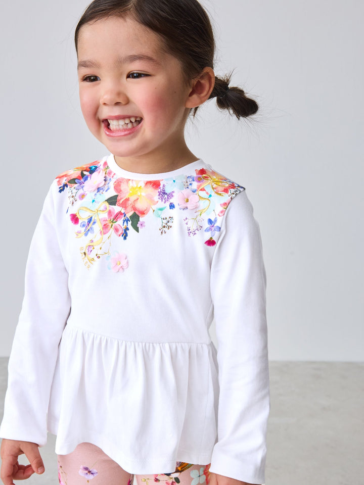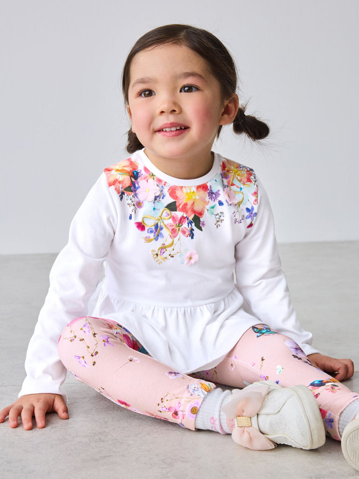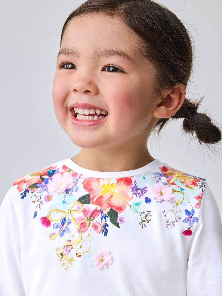 She'll look pretty as a picture in this 2 piece set from Baker by Ted Baker. This set comes in a pretty soft pink colour, with a peplum hem T-shirt featuring a floral print around the neck, with our iconic Baker branding in gold embroidery. The T-shirt is paired with pretty printed floral leggings, which feature an elasticated waist and a grosgrain bow at the centre. Pair with trainers for a cute and casual fit for your little one! Sweater Main 100% Cotton. Rib 92% Cotton, 8% Elastane. Leggings 92% Cotton, 8% Elastane. Country of Origin: Sri Lanka