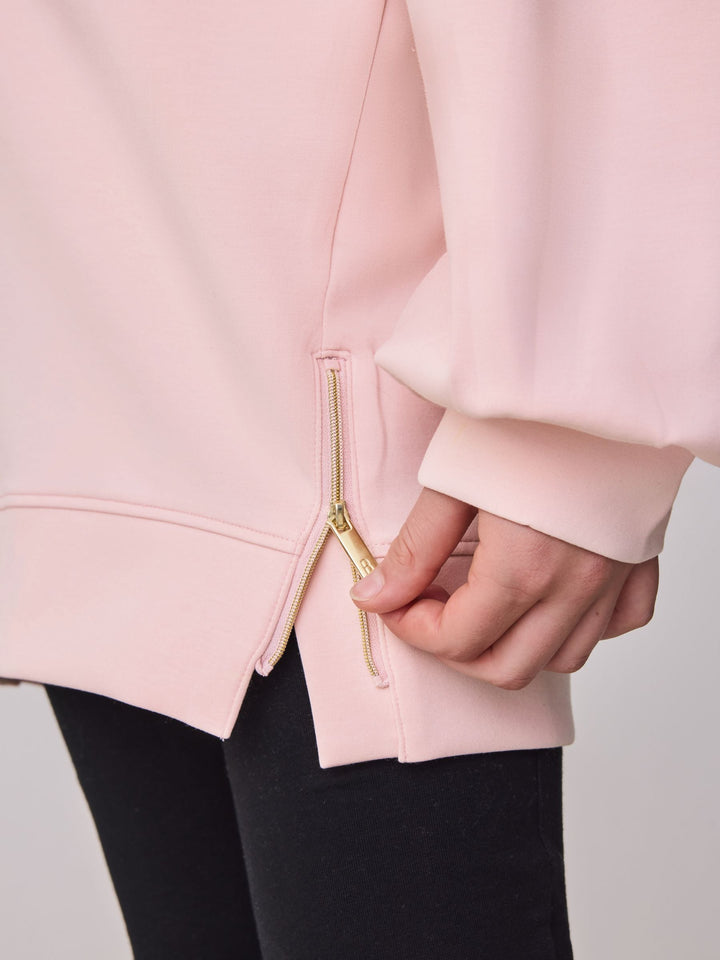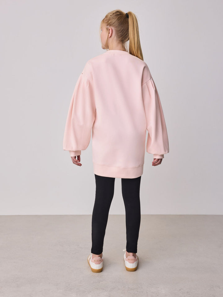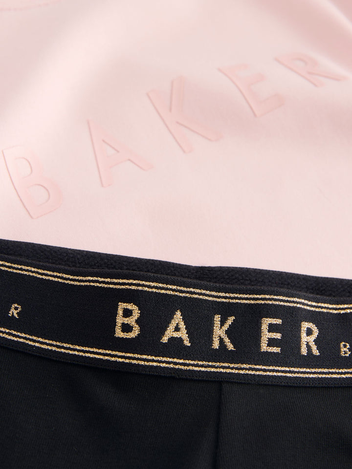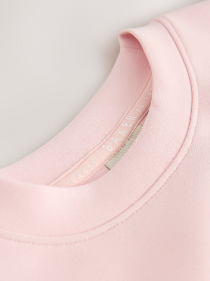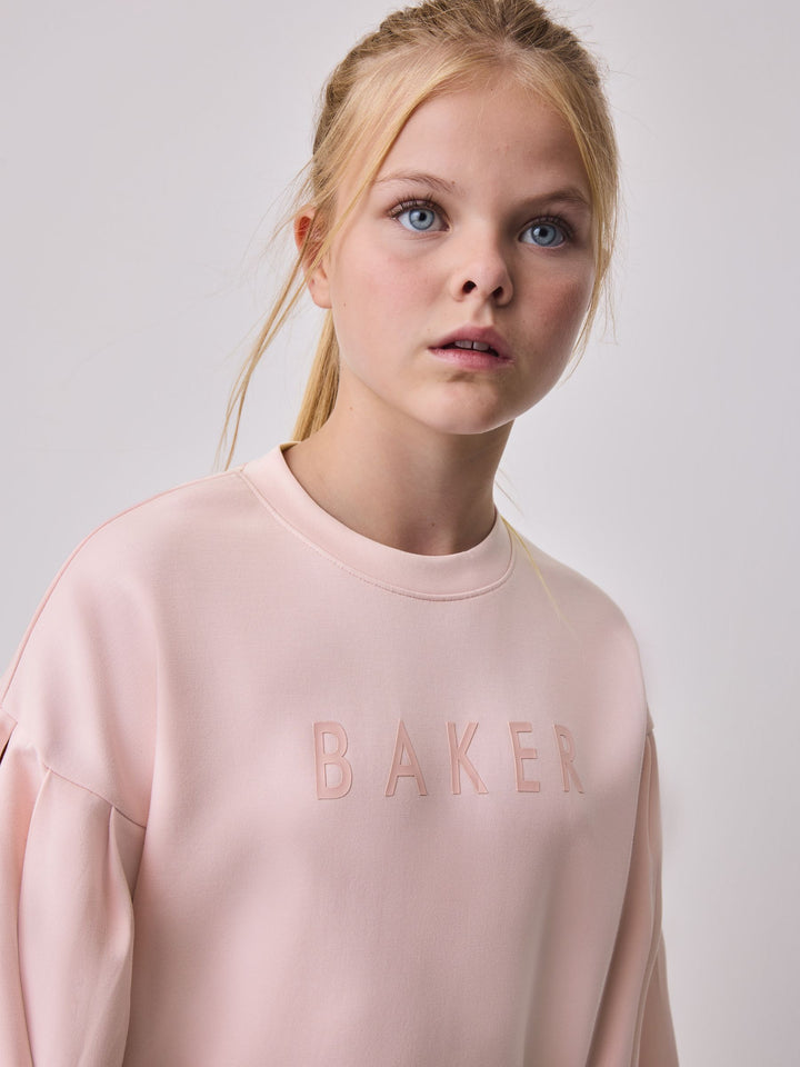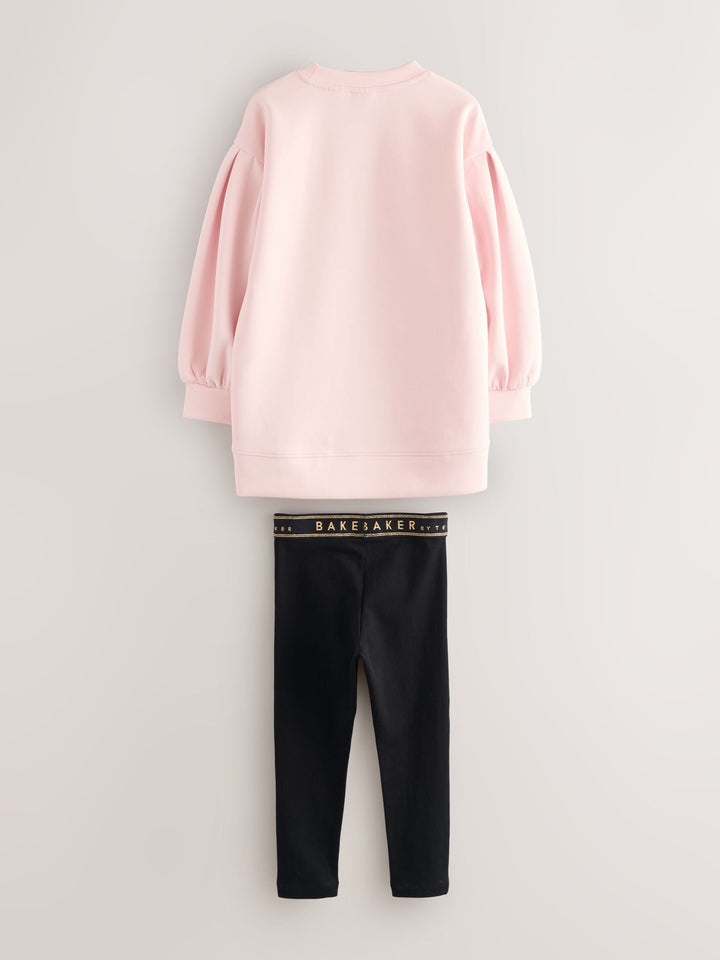 Elevate her casual wardrobe with this effortlessly cool two-piece set from BAKER by Ted Baker. The outfit pairs a longline sweat top in our new premium fabric, paired with classic leggings for a look that's stylish yet perfect for everyday comfort. The top comes in a gorgeous soft pink colour and features a bubble shaped sleeve design for a fashionable silhouette. Signature branding is subtly detailed with highbuild Baker branding across the chest and gold branded zips at the hem add an element of modern edge. The leggings are made from a stretchy, comfortable fabric and feature a gold lurex logo waistband, making this set a perfect blend of sport-luxe and everyday practicality. Sweater 48% Polyester, 25% Modal, 23% Cotton, 4% Elastane. Leggings 92% Cotton, 8% Elastane. Country of Origin: Bangladesh