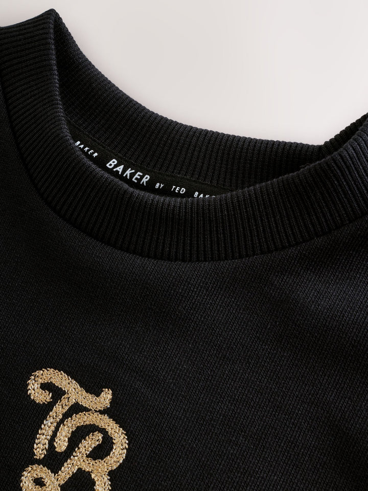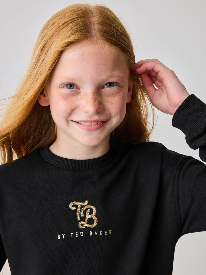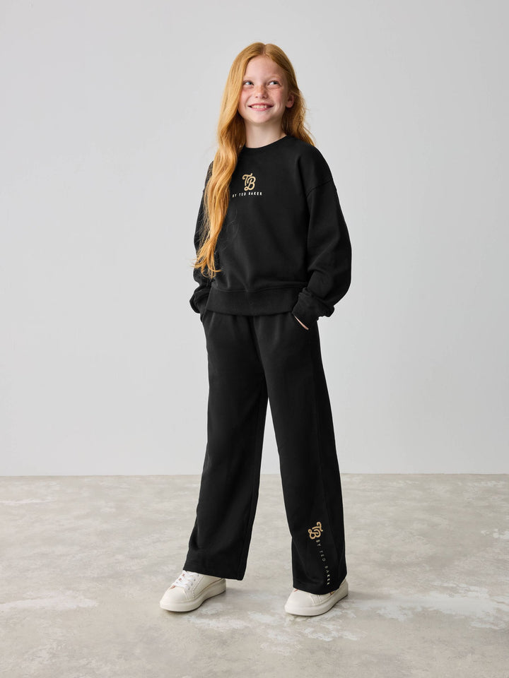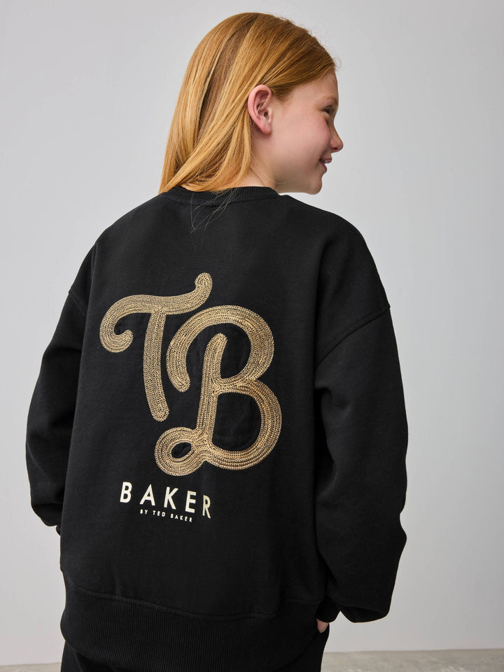 Build her wardrobe essentials with this trendy wide leg 2 piece set from Baker by Ted Baker. The set includes a soft brushback sweat in a boxy crop shape, paired with wide leg joggers. The sweat top features Baker embroidery in gold thread at the front, with an enlarged TB branding at the back. The joggers come with an elasticated waist, with branded drawcords with dipped ends, and functional pockets. The joggers also feature branding down the leg. This set is an ideal piece to add to her winter wardrobe Sweater and Jogger 93% Cotton, 7% Recycled polyester. Country of Origin: Pakistan