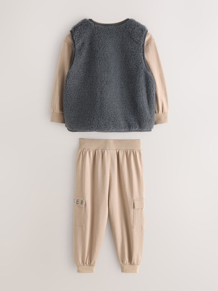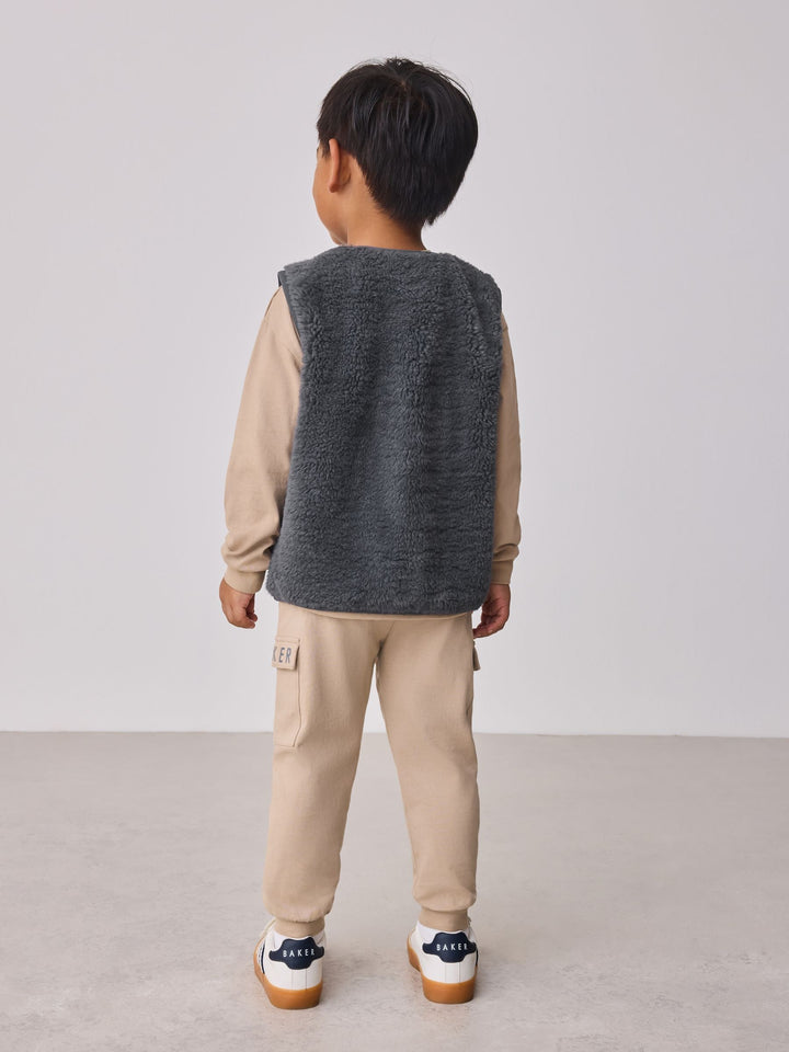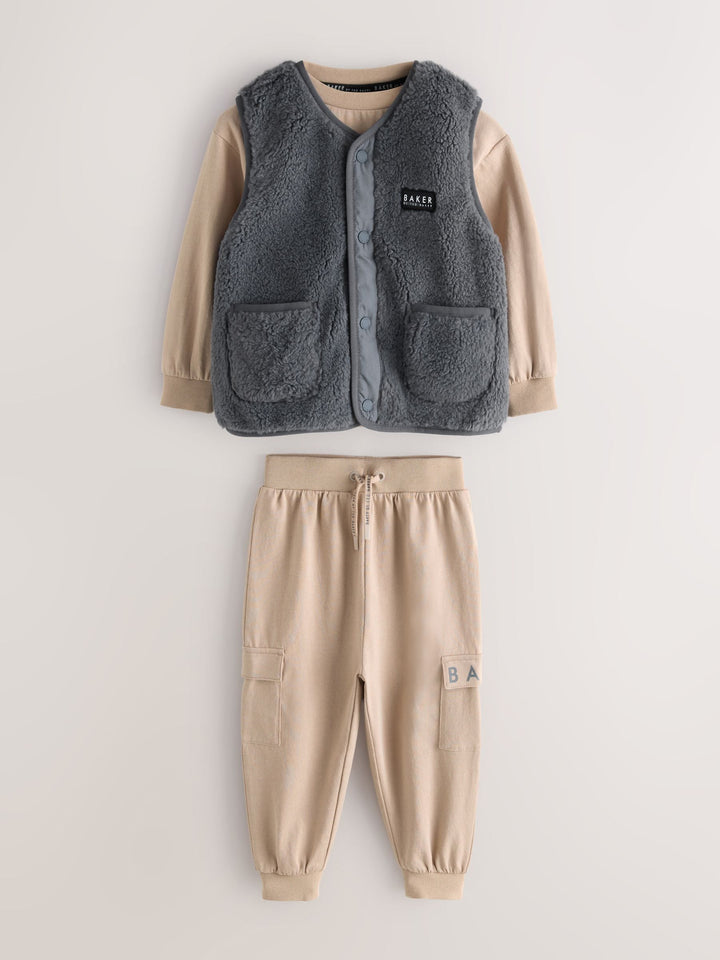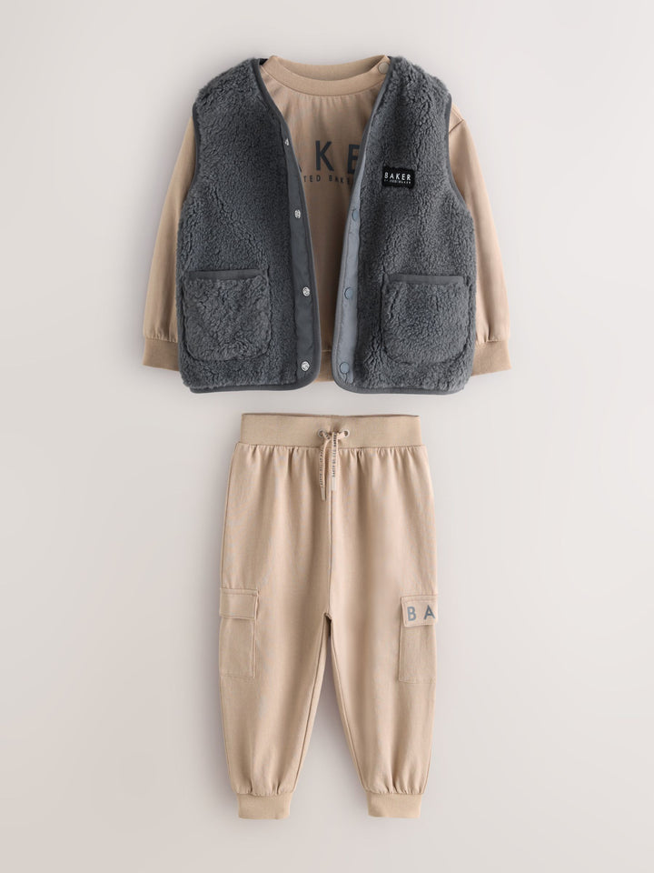 Baker by Ted Baker 3 Piece Stone Borg Gilet, Sweatshirt and Joggers Set