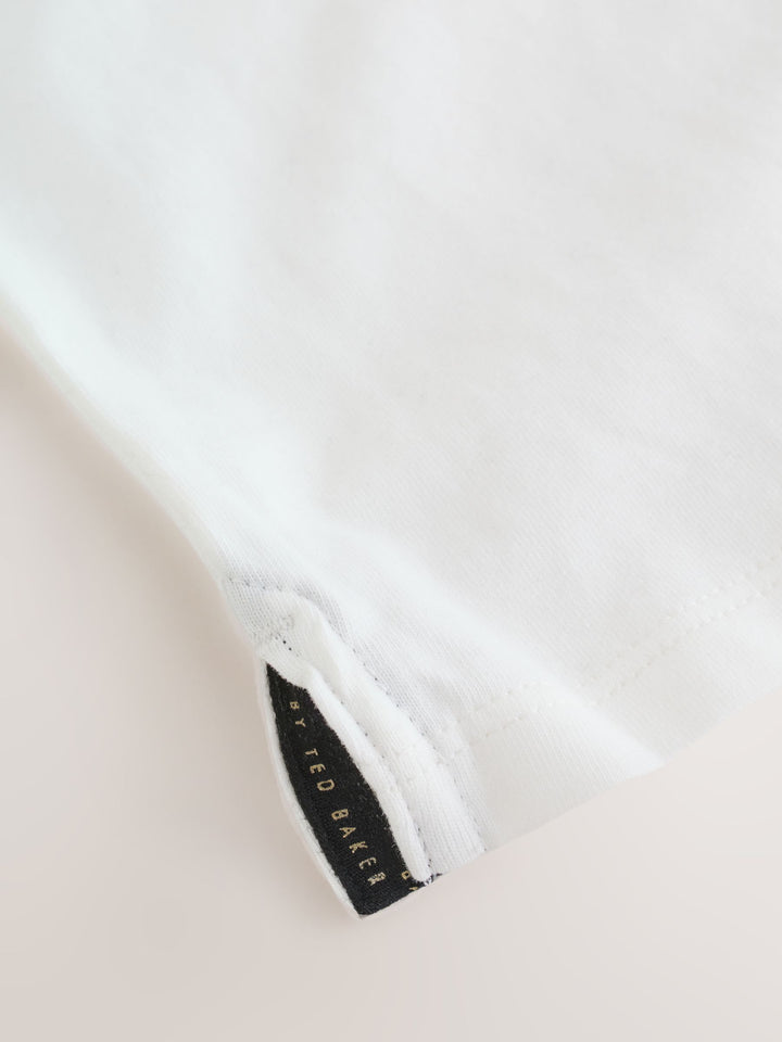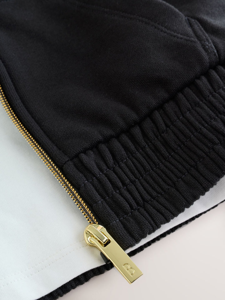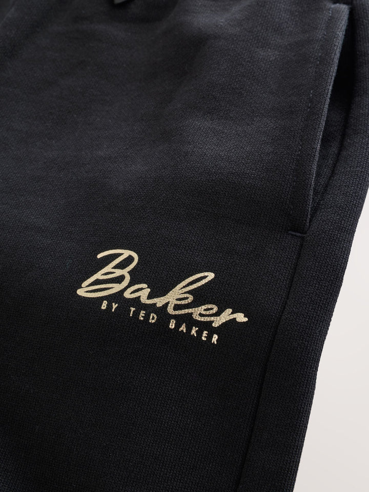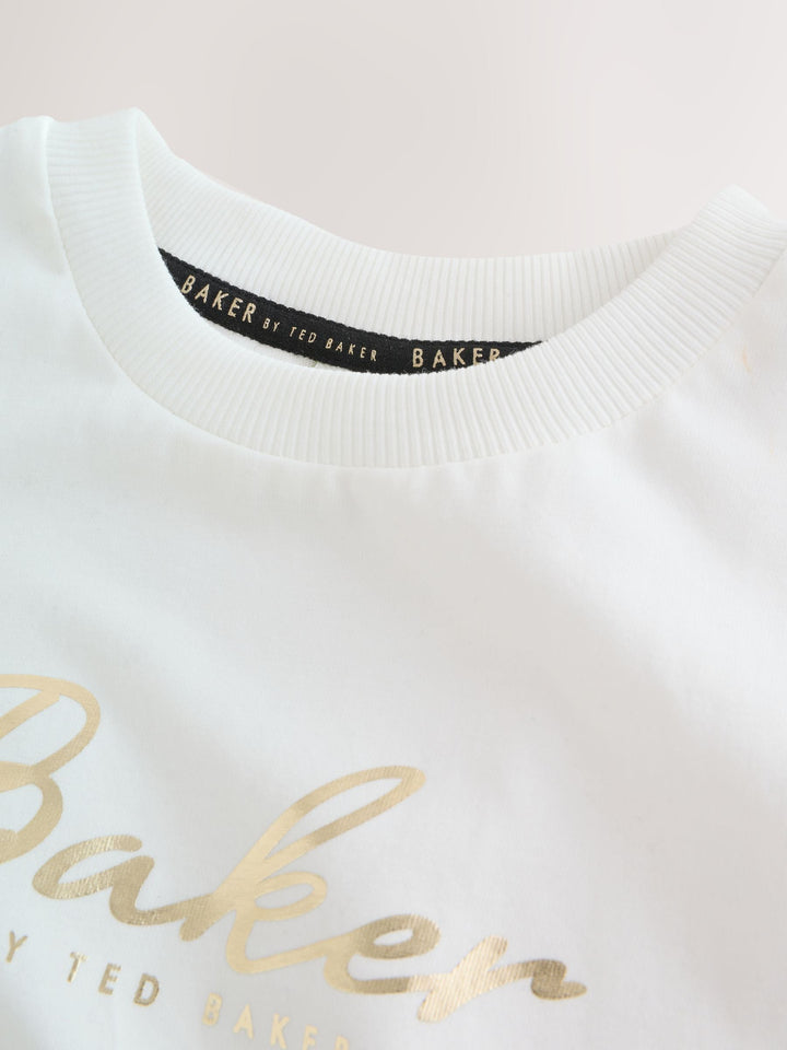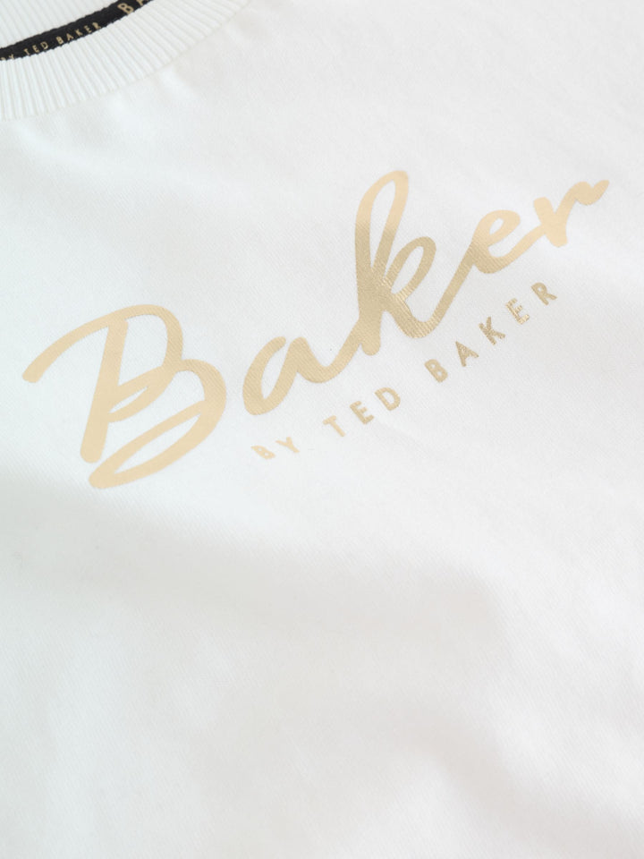 Introduce elevated casualwear to her wardrobe with this chic, three-piece co-ord set from Baker by Ted Baker. This sleek 3 piece set features a matching zip-through hoodie and wide-leg joggers in timeless black, with a white short sleeved T-Shirt layered underneath. The hoodie features a modern boxy cropped length, with gold foil Baker braanding on the chest and across the back, finished with our gold branded zip puller. The joggers offer a contemporary wide-leg fit and a comfortable elasticated, adjustable drawstring waist. The T-Shirt is complimented with our soft gold Baker foil branding. Finishing details include gold branded drawcords and eyelets, adding a touch of luxury to the casual aesthetic. T-shirt, Jacket and Jogger Main 100% Cotton. Rib 95% Cotton, 5% Elastane. Country of Origin: Bangladesh