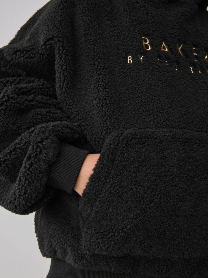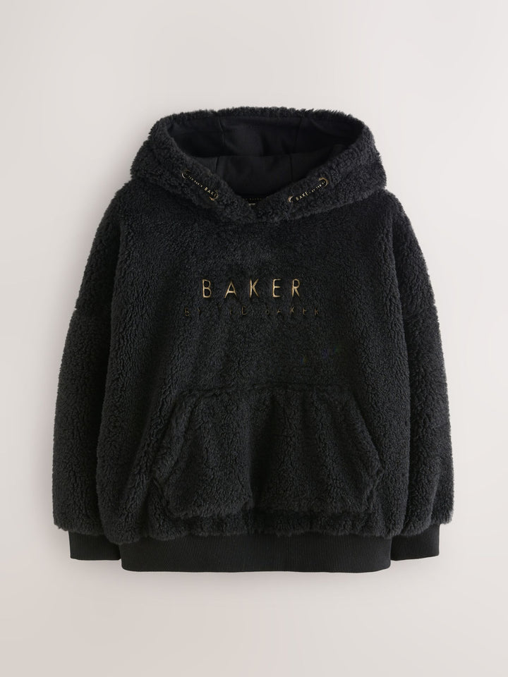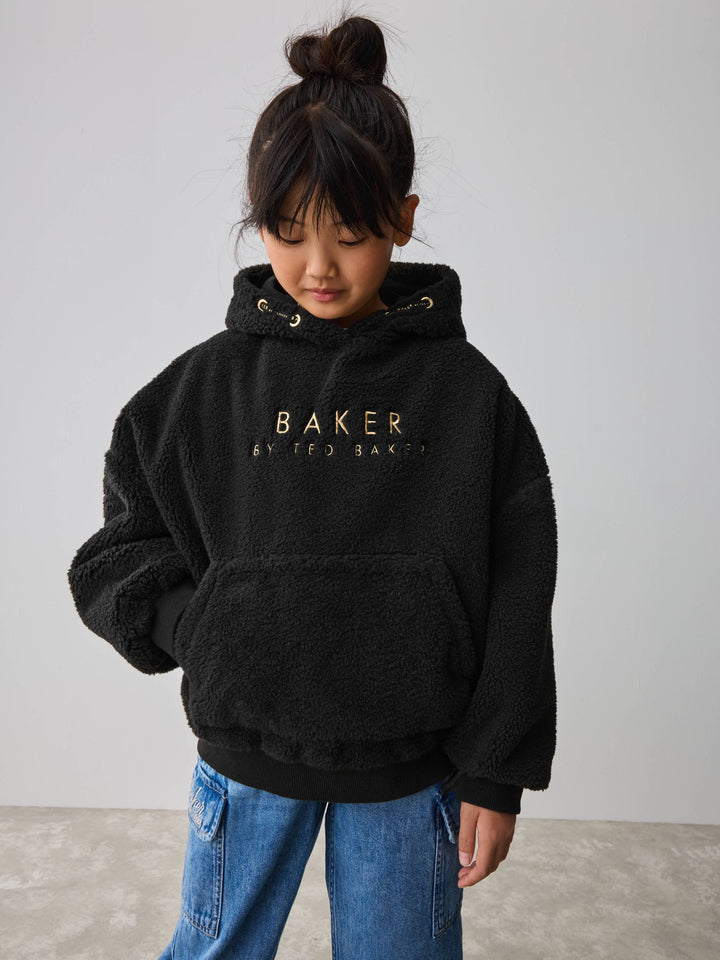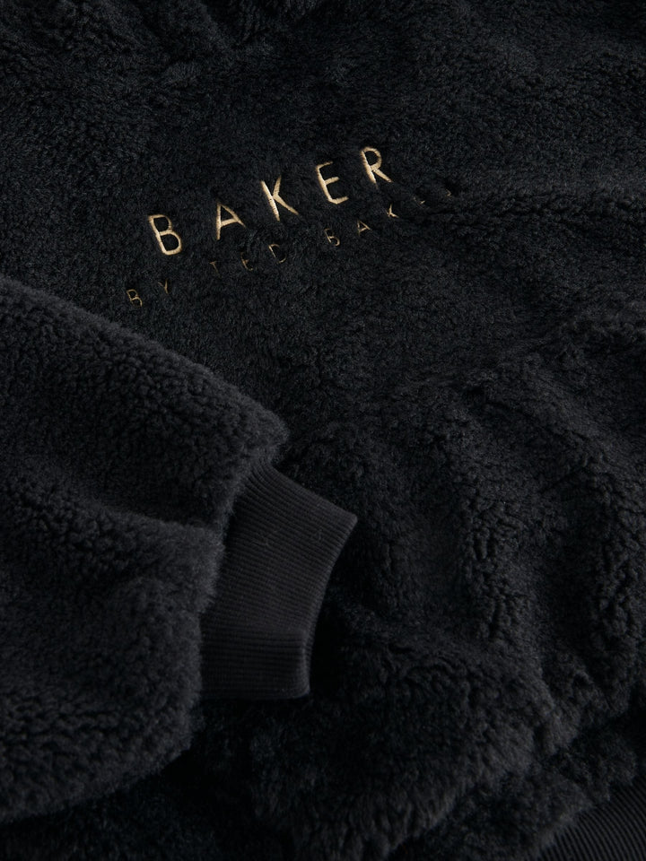 Baker by Ted Baker Back Embroidery Borg Fleece Black Hoodie