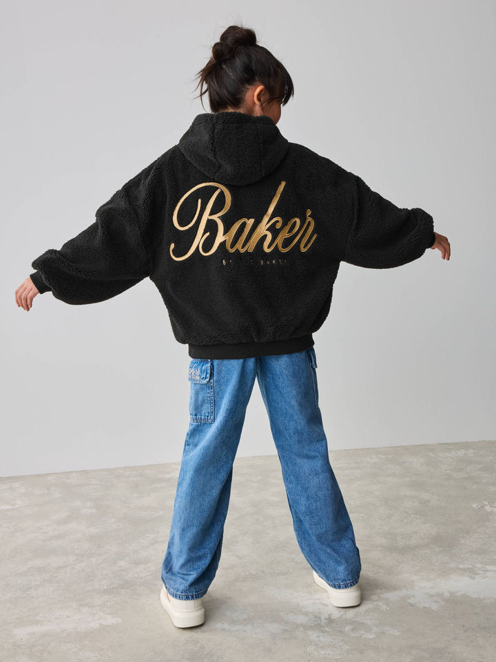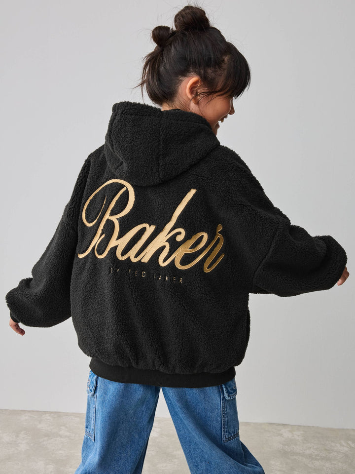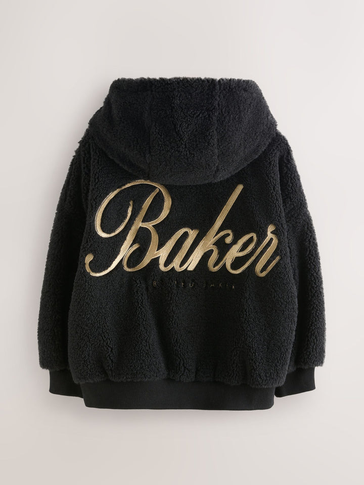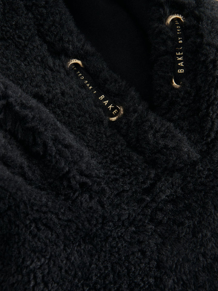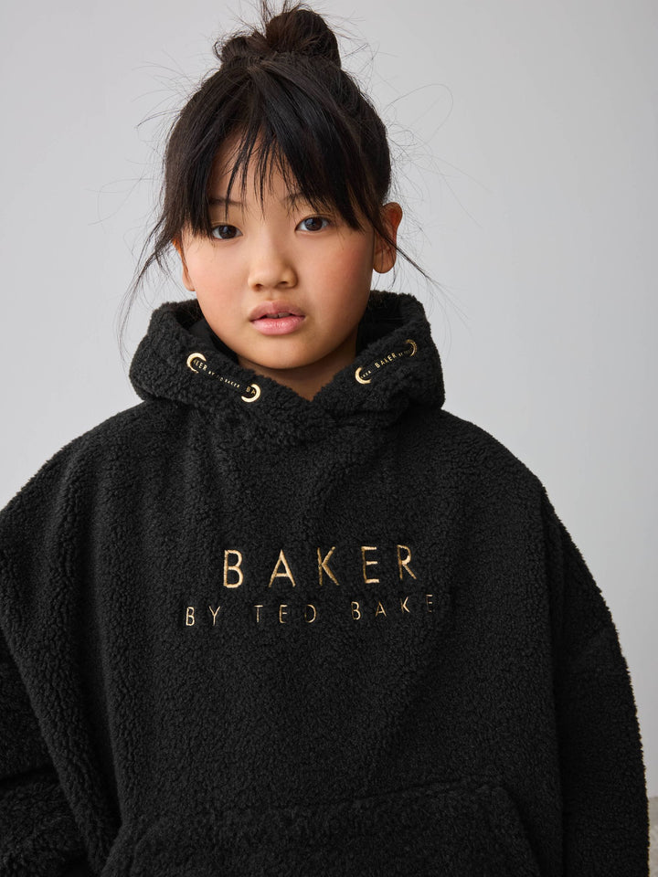 Baker by Ted Baker Back Embroidery Borg Fleece Black Hoodie