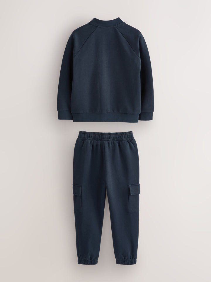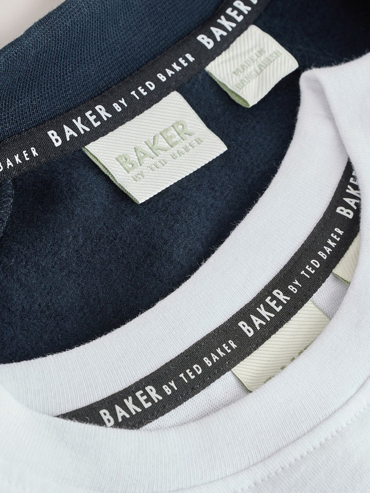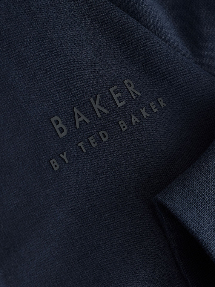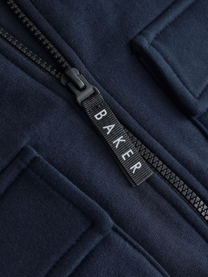 Dress him in effortless style with the Baker by Ted Baker Bomber Jacket, T-Shirt, and Joggers Set. This coordinated three-piece outfit offers both comfort and a cool, modern look. The navy bomber jacket features subtle Baker by Ted Baker branding on the chest and a matching branded zip puller. It's perfectly paired with a classic white branded t-shirt. Completing the set are the matching navy joggers, which come with stylish cargo pockets and a comfortable elasticated waist with a toggle detail for a perfect fit. 3 piece set Branded details Cool and comfortable Jacket, Jogger and T-shirt Main 100% Cotton. Rib 95% Cotton, 5% Elastane. Country of Origin: Bangladesh