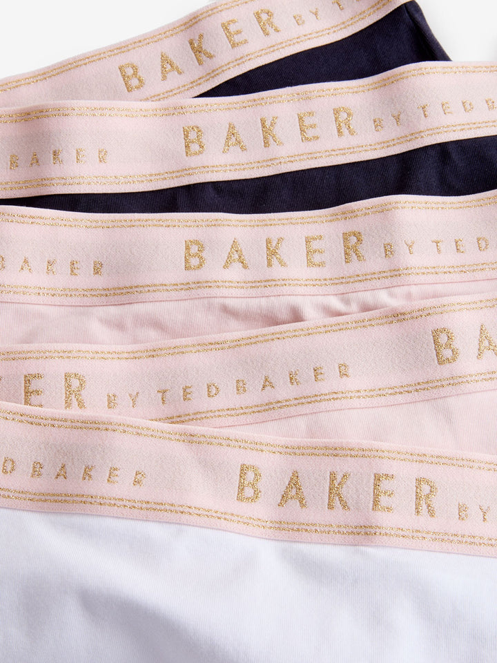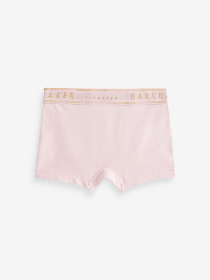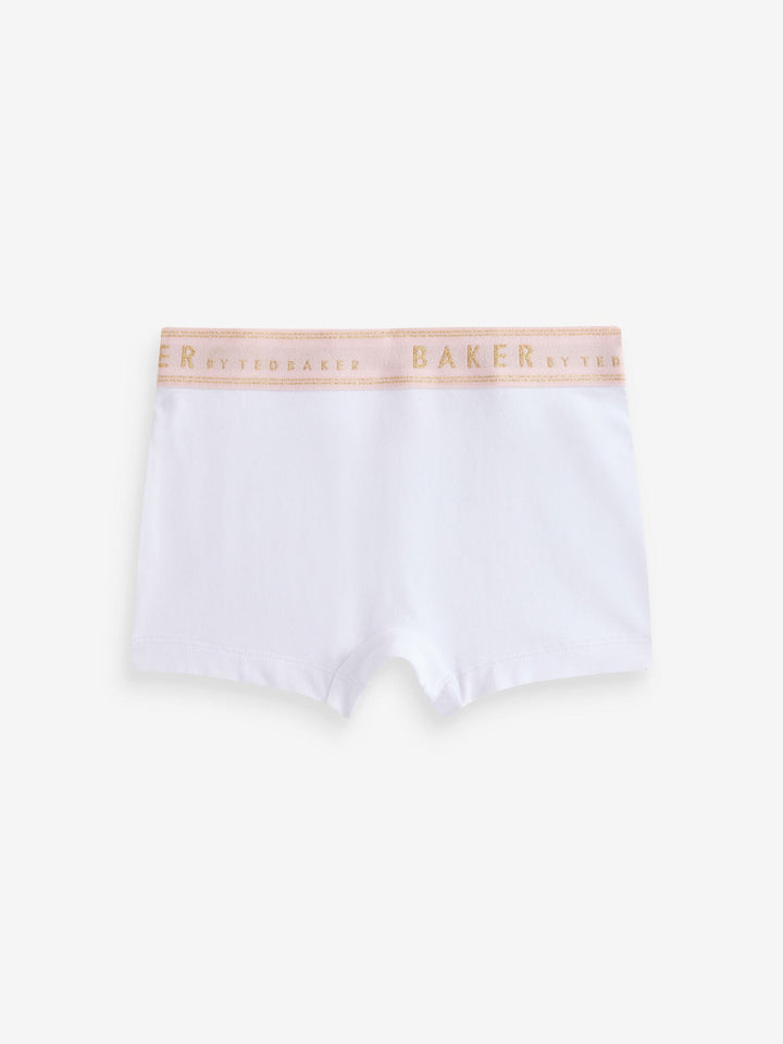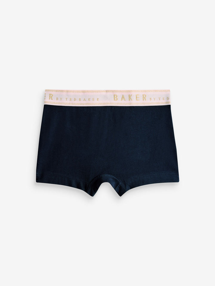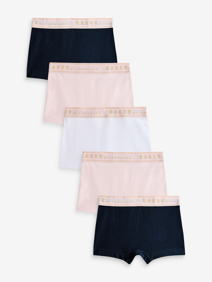 Treat her to everyday comfort and style with the Baker by Ted Baker boxers 5 pack. Crafted from soft cotton with added stretch, these boxer briefs feel gentle against the skin for all-day wear. Each pair features the signature Baker elastic waistband ensuring a secure and comfortable fit. A practical and stylish essential for girls. 5 pack Soft cotton fabric Elastic branded waistband 5 x Knickers 95% Cotton, 5% Elastane. Country of Origin: Bangladesh