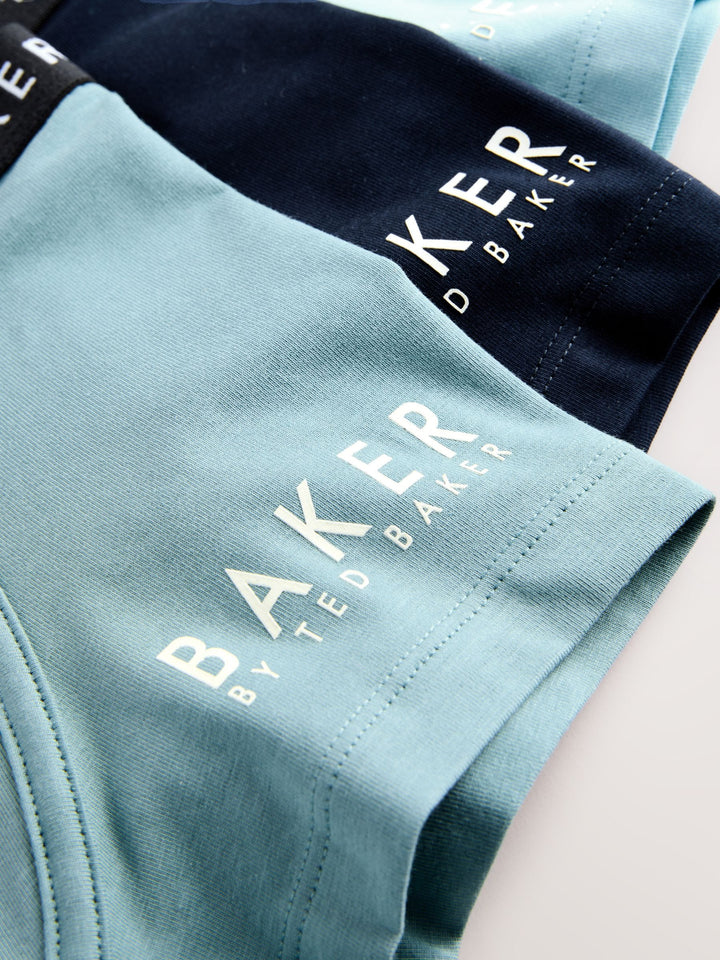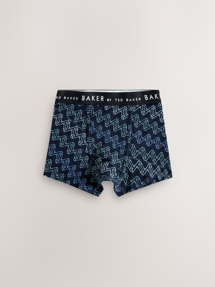 Give his everyday essentials a stylish upgrade with the Baker by Ted Baker Boys Boxers 5 Pack. Crafted from a comfortable cotton-rich blend, these boxers are designed for all-day comfort and breathability. Each pair features a distinctive Baker branded elastic waistband, adding designer flair to his underwear drawer. This convenient 5-pack ensures he's always got a fresh pair ready, combining practical comfort with Ted Baker's signature style. 5 pack Cotton rich Baker branded waistband Boxers Smoke Blue, Boxers Navy Blazer, Boxers Stratosphere and Boxers Printed 95% Cotton, 5% Elastane. Boxers Grey Marl 85% Cotton, 10% Viscose, 5% Elastane. Country of Origin: Bangladesh
