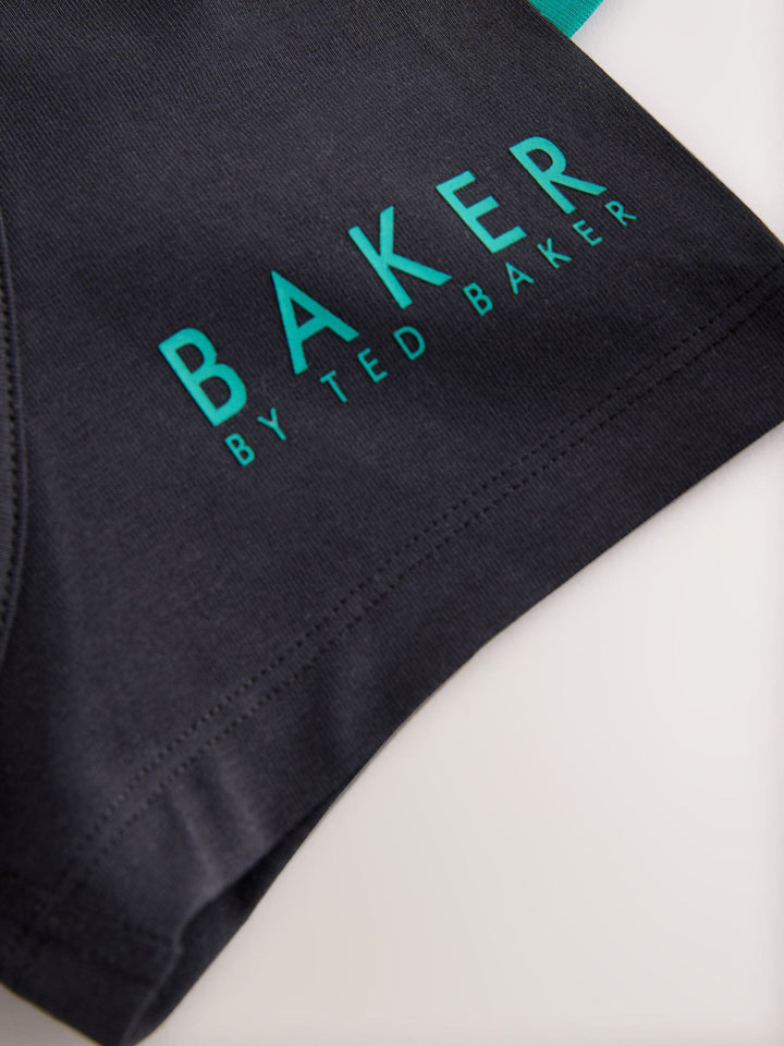 Give his everyday essentials a stylish upgrade with the Baker by Ted Baker Boys Boxers 5 Pack. Crafted from a comfortable cotton-rich blend, these boxers are designed for all-day comfort and breathability. Each pair features a distinctive Baker branded elastic waistband, adding designer flair to his underwear drawer. This convenient 5-pack ensures he's always got a fresh pair ready, combining practical comfort with Ted Baker's signature style. 5 pack Cotton rich Baker branded waistband Boxers Jet Black, Boxers Ocean Floor, Boxers Blackened Pearl and Boxers Galaxy Blue 95% Cotton, 5% Elastane. Boxers Grey Marl 85% Cotton, 10% Viscose, 5% Elastane. Country of Origin: Bangladesh