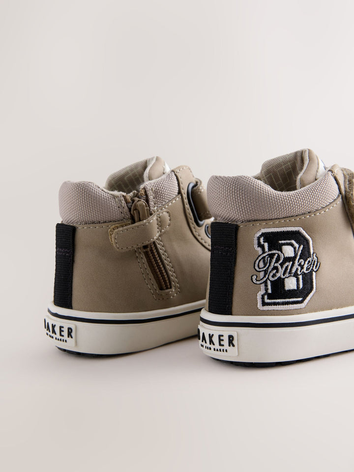 Step up his shoe game with these stylish Baker by Ted Baker Boys Lace Up Varsity High Top Trainers. These cool high-top trainers feature a durable PU upper and elasticated laces for easy wearing, making them perfect for active kids. With a convenient touch-and-go fastening and a side zip detail, getting them on and off is a breeze. The embroidered varsity TB logo and Baker branded trims add a premium touch, while the sleek black piping detail around the sole and a gripped sole ensure both style and stability. High top style Elasticated laces Touch and go fastening Baker branded trims Gripped sole Perfect for colder months Upper - Other Materials, Textile, Lining and Sock - Textile, Sole - Other Materials. Country of Origin: Vietnam