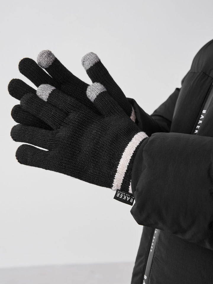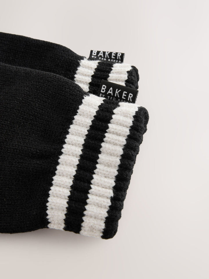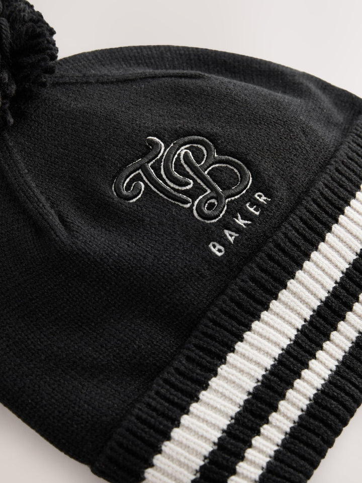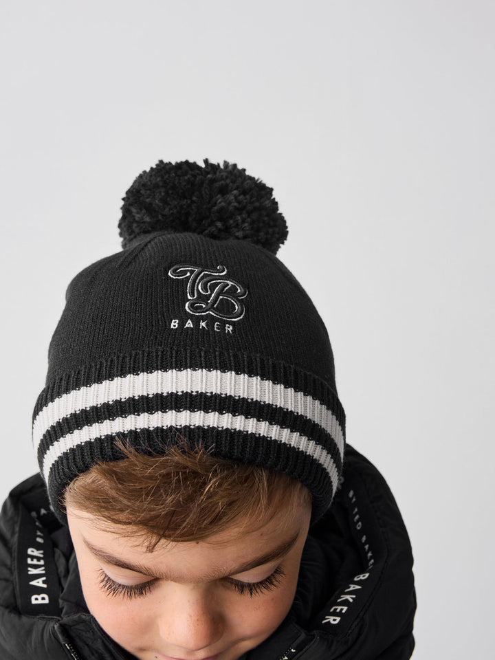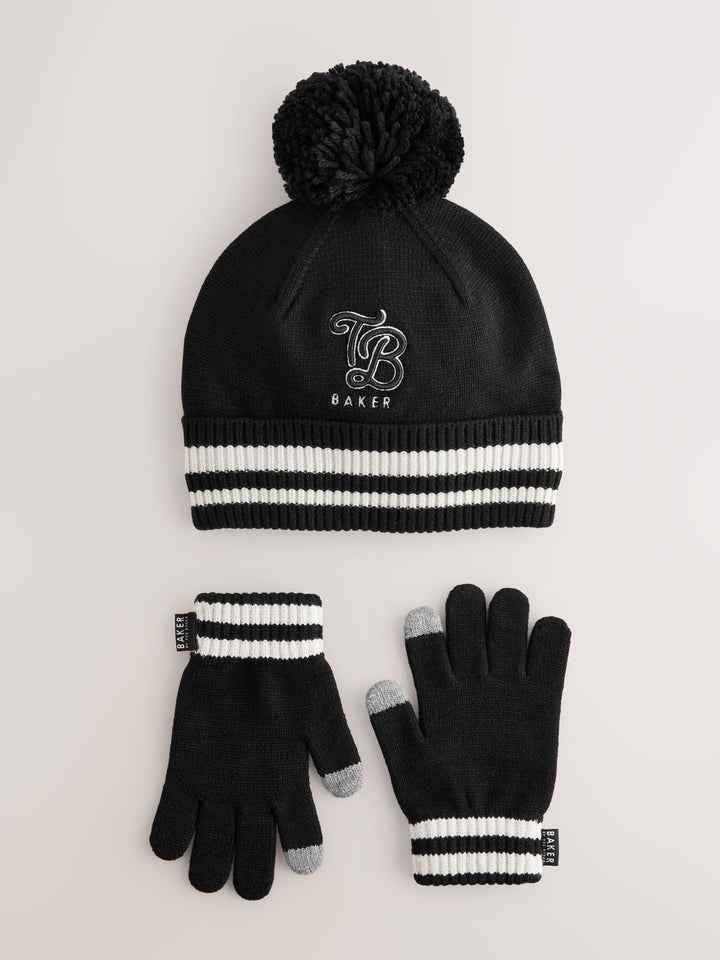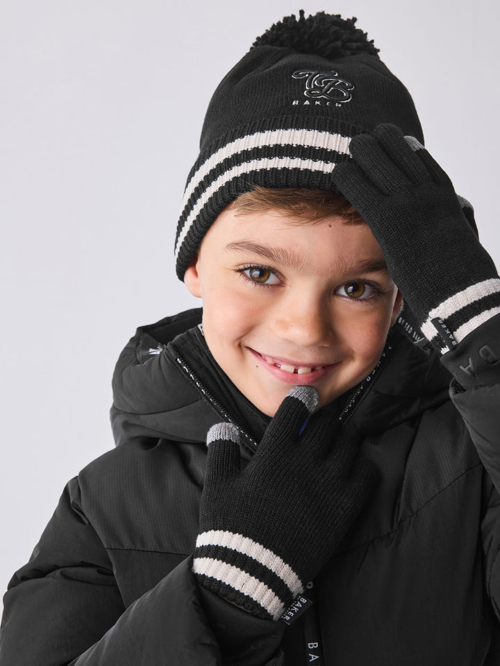 Baker by Ted Baker Boys Varsity Logo Pom Black Beanie and Gloves Set