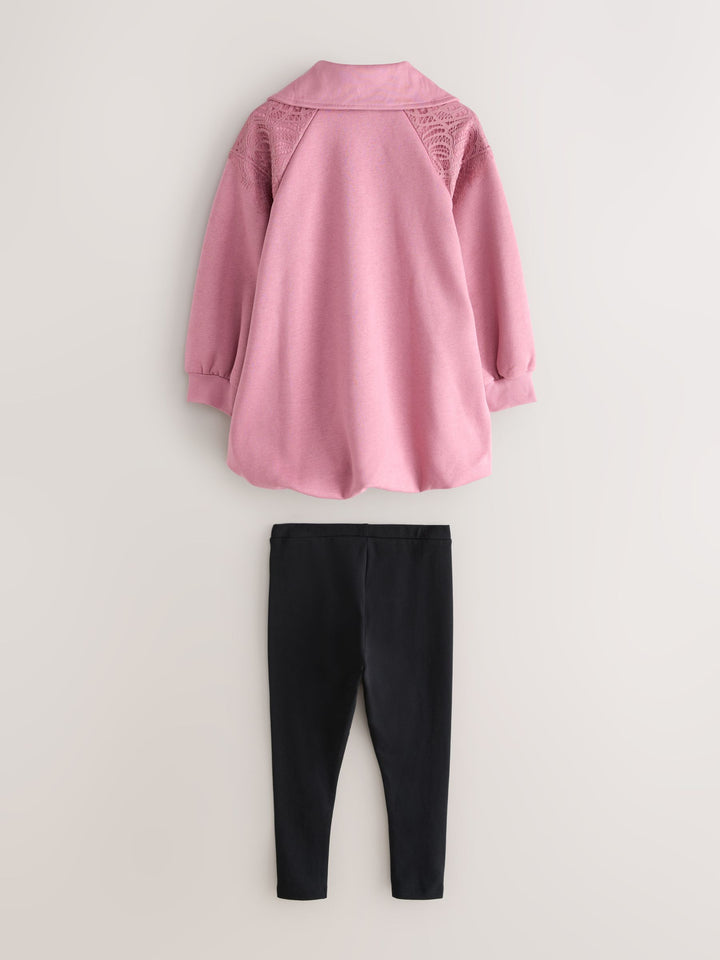 Baker by Ted Baker Bubble Hem Lace Sweatshirt & Leggings Set