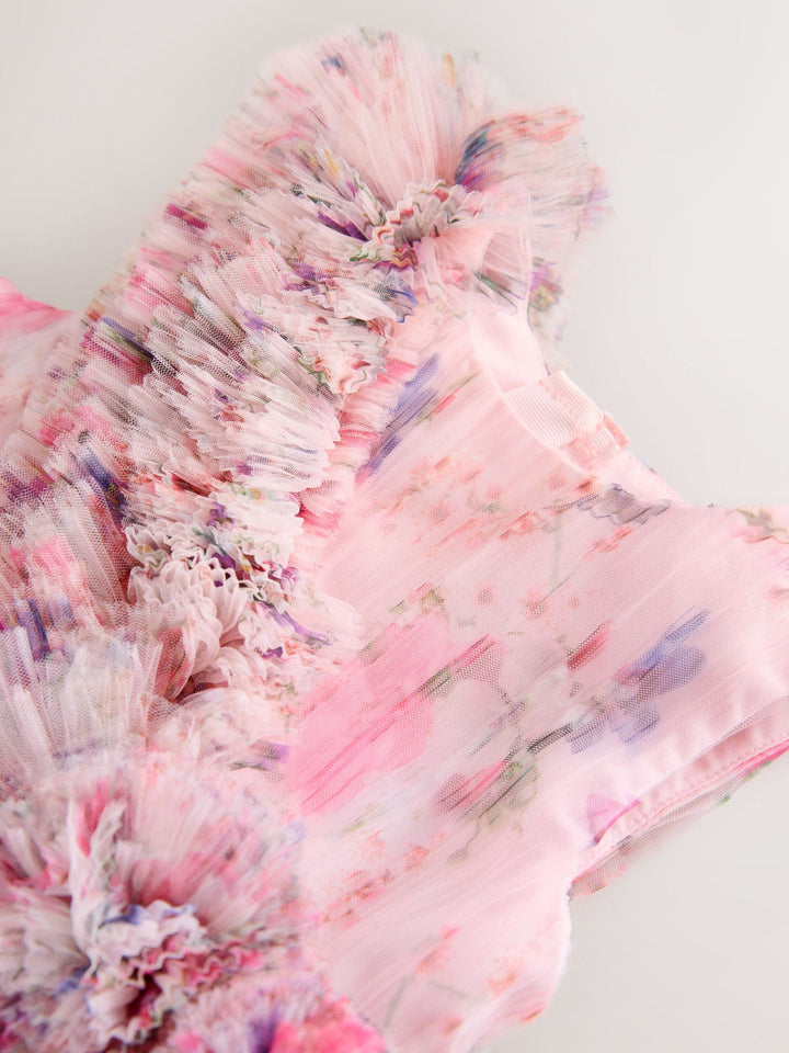 Baker by Ted Baker Crinkle Mesh 3D Ruffle Shoulder Occasion Dress