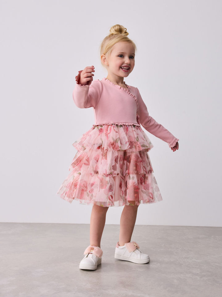Dress your little one in this adorable pink ballerina wrap-over tulle dress from Baker by Ted Baker. The mockable design boasts a soft wrap bodice with frilled edges, complemented with a matching mesh tulle skirt. It is finished with a charming bow detail on the side. Pair with our formal sandals. Ballet style Mesh tulle skirt Frill details Bodice 95% Cotton, 5% Elastane. Skirt 100% Polyester. Lining 100% Cotton. Country of Origin: China