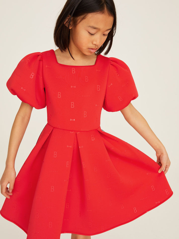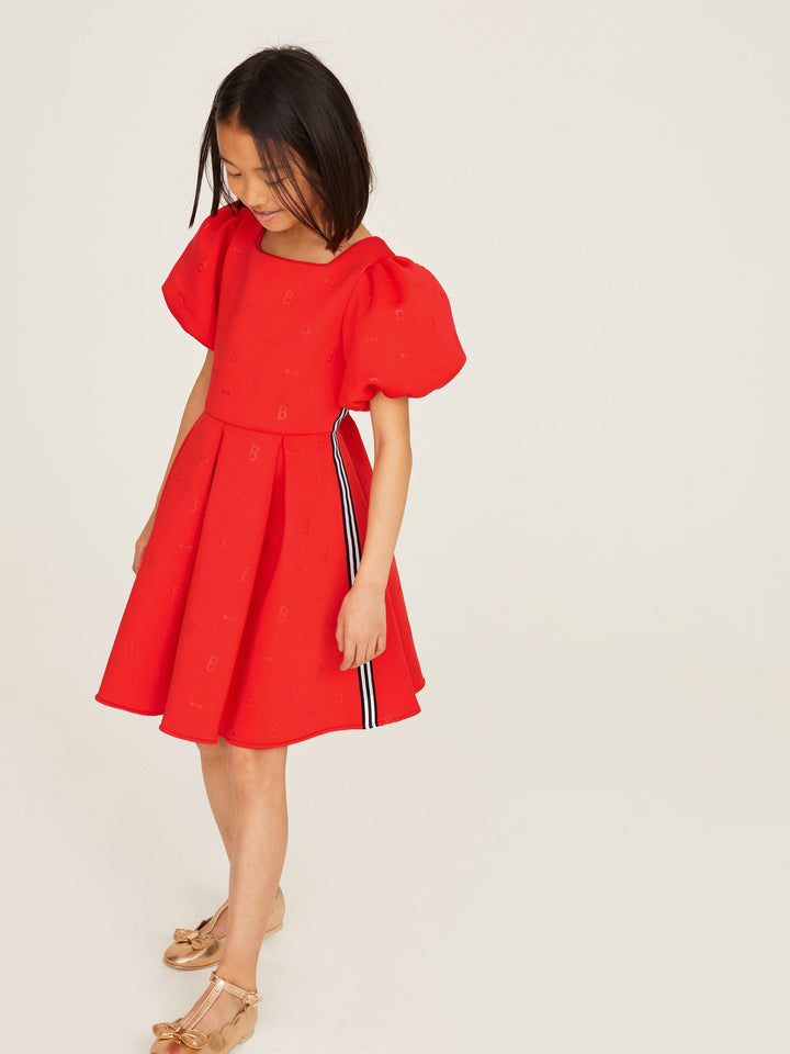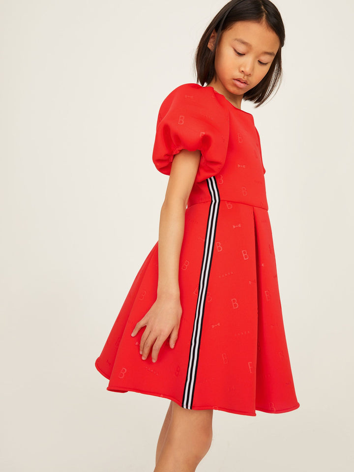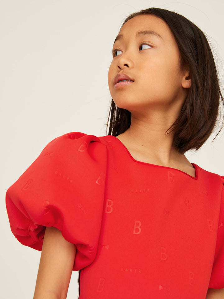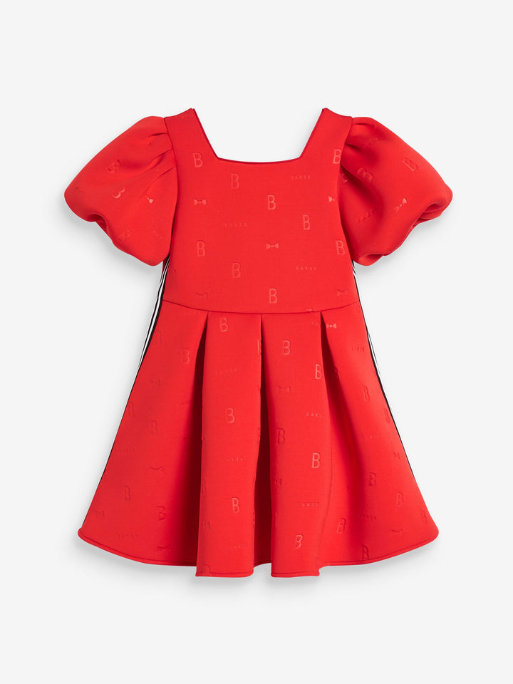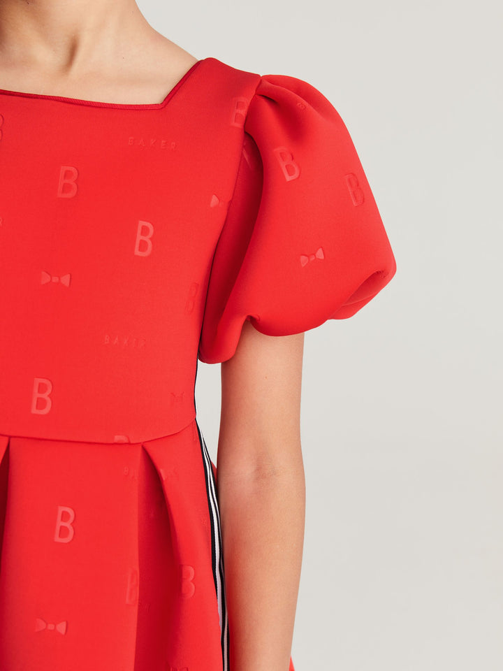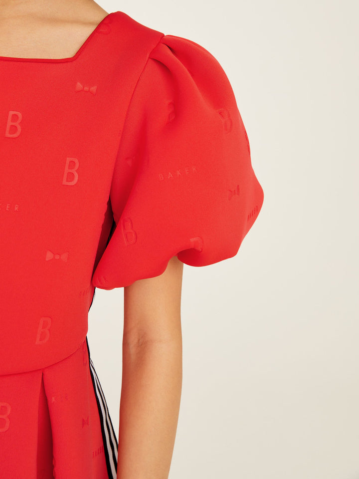 In a gorgeous scuba fabric, this statement-making dress from Baker by Ted Baker is designed with pretty puffball sleeves and signature Baker branding with side tape detailing. Perfect for twirling! Machine washable. Main 92% Polyester, 8% Elastane. Lining 100% Polyester. Country of Origin: Morocco