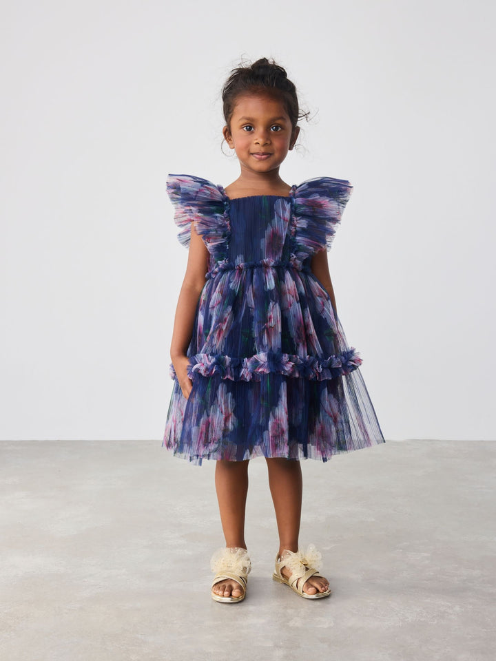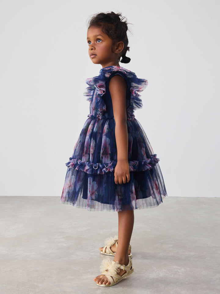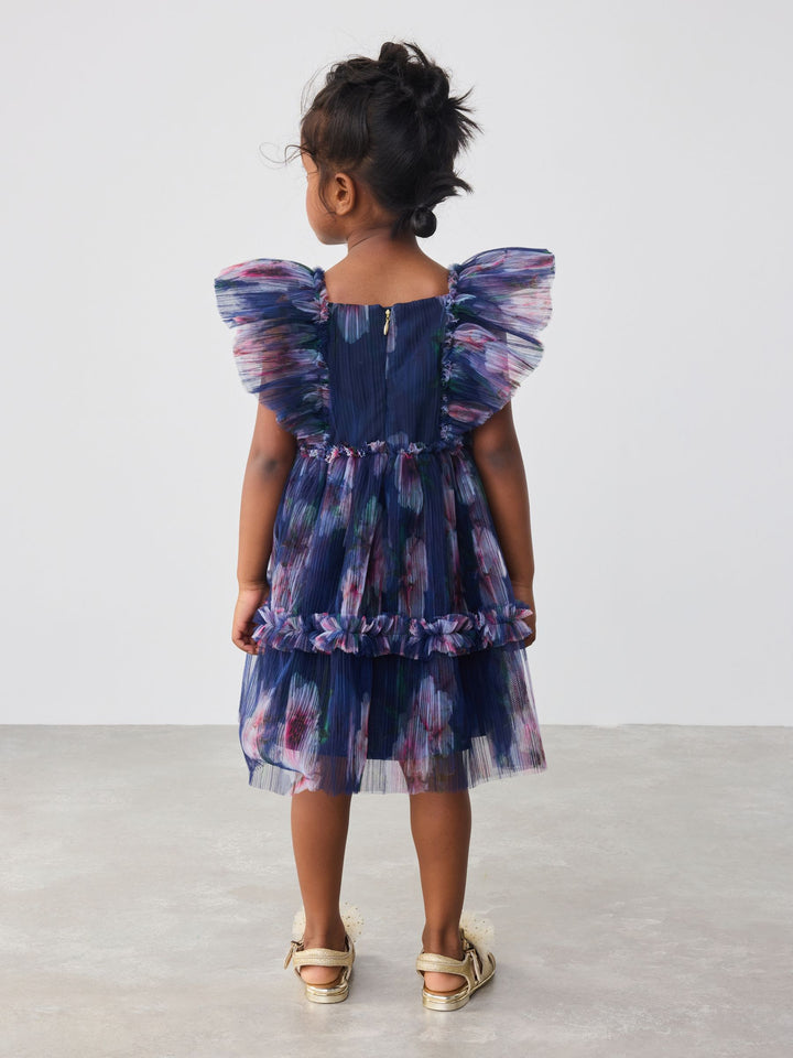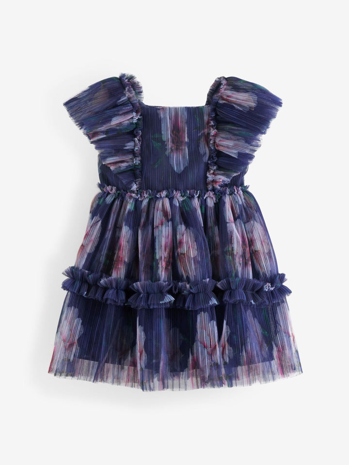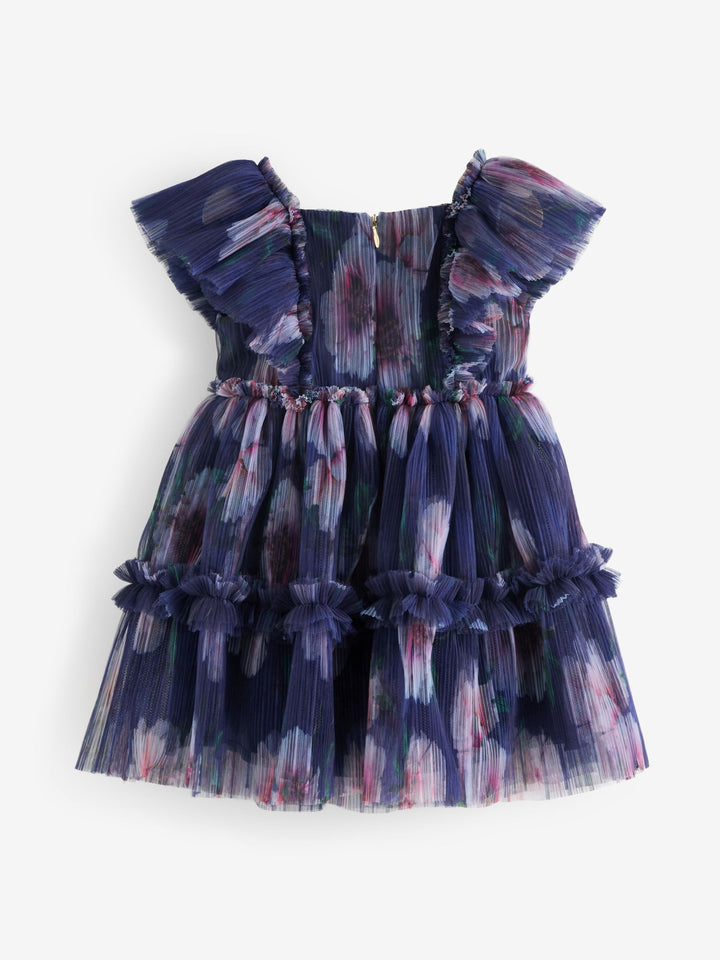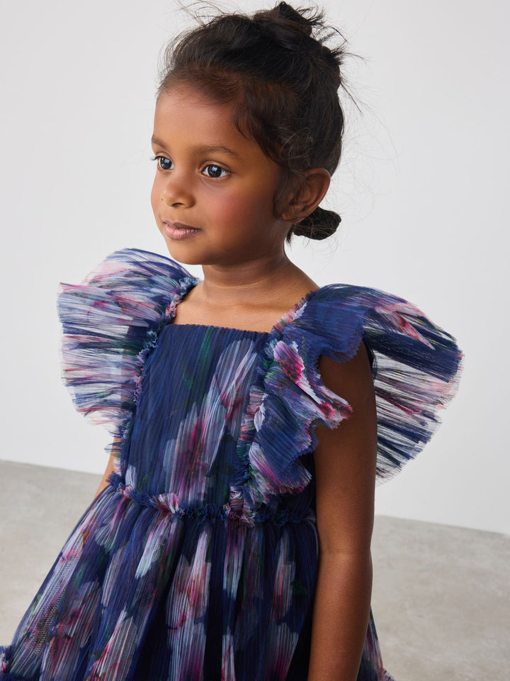 Baker by Ted Baker Floral Crinkle Mesh Frill Dress