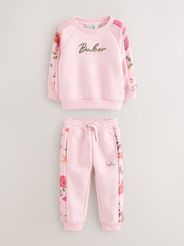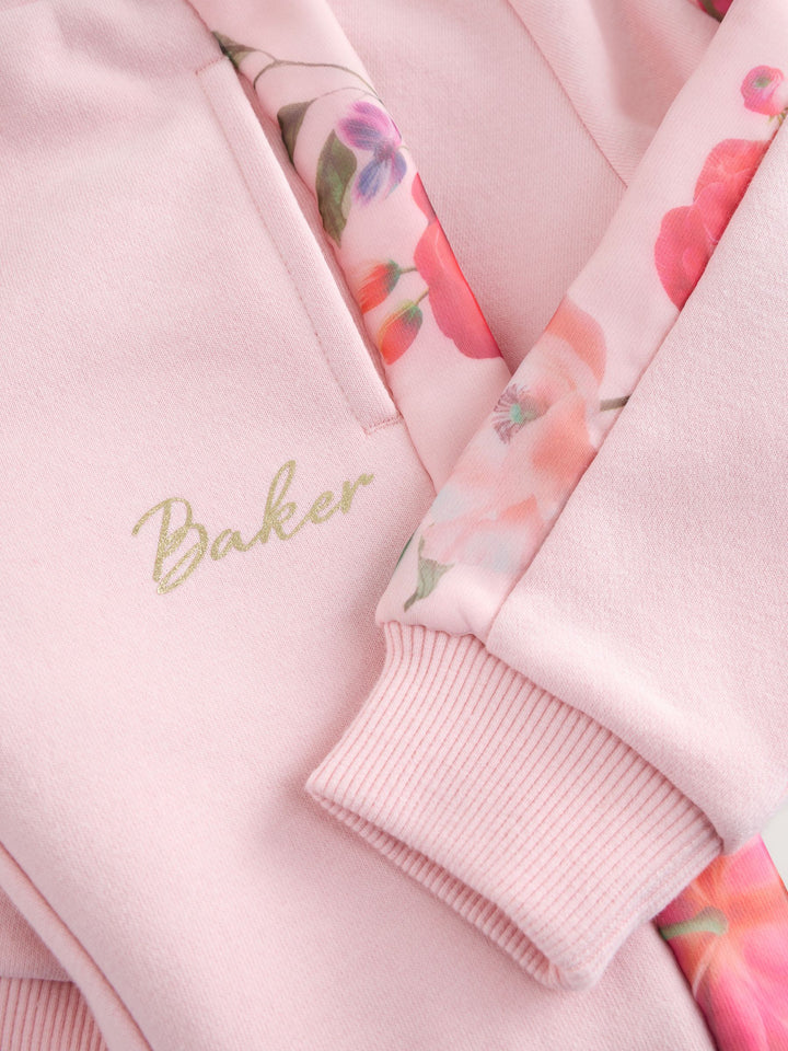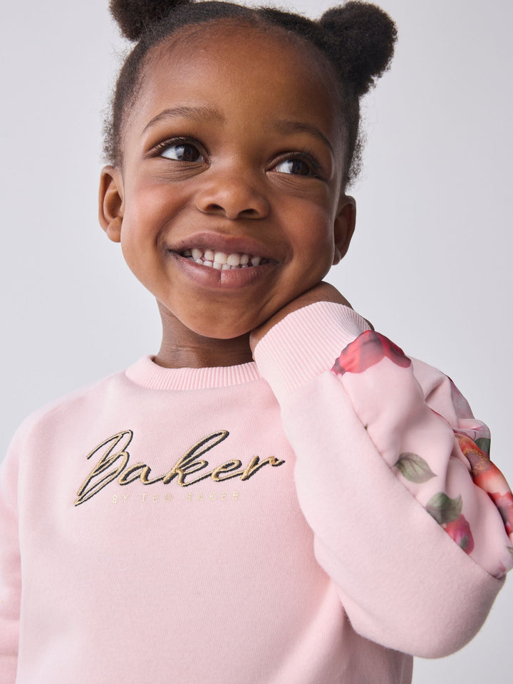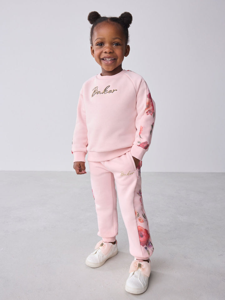 Upgrade her wardrobe essentials with this 2 piece sweat set from Baker by Ted Baker. Blending comfort and style your little girl will love, they are made in a soft brushback fabric. The sweat and jogger are elevated with a floral printed organza panel down the sleeves and side of the leg. Finished with gorgeous Baker branded embroidery in gold foil on the chest. Team them with our chunky trainers for a great everyday look. Sweater and Jogger Main 60% Cotton, 40% Polyester. Panel 100% Polyester. Rib 98% Cotton, 2% Elastane. Country of Origin: China