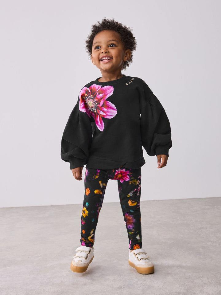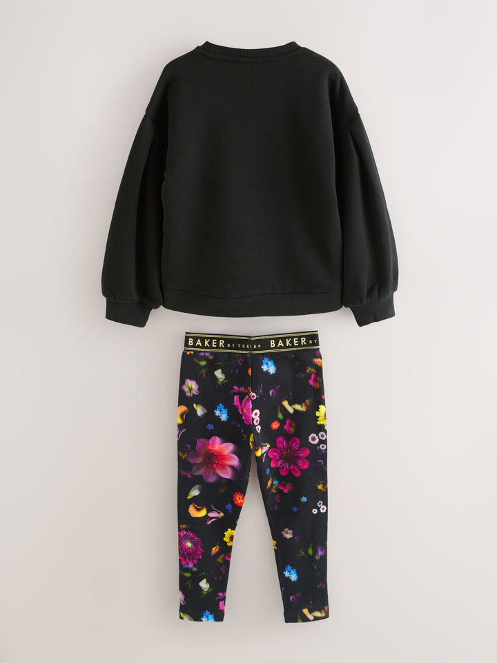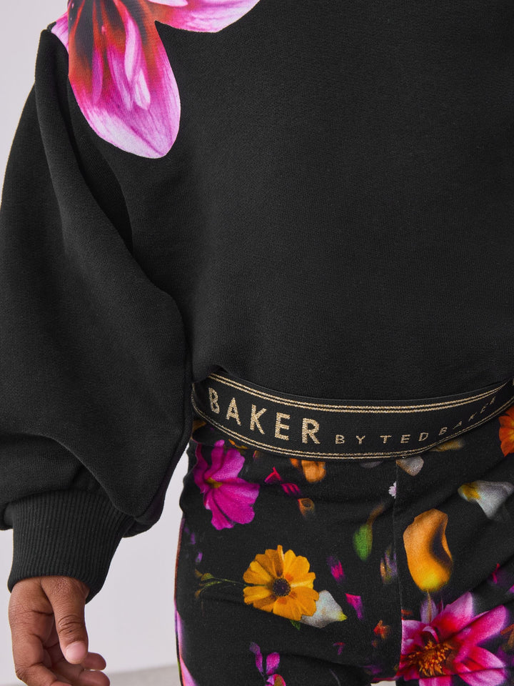 Baker by Ted Baker Flower Print Black Sweatshirt and Leggings Set 2 Piece