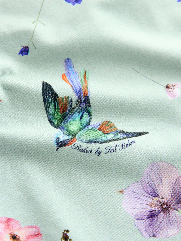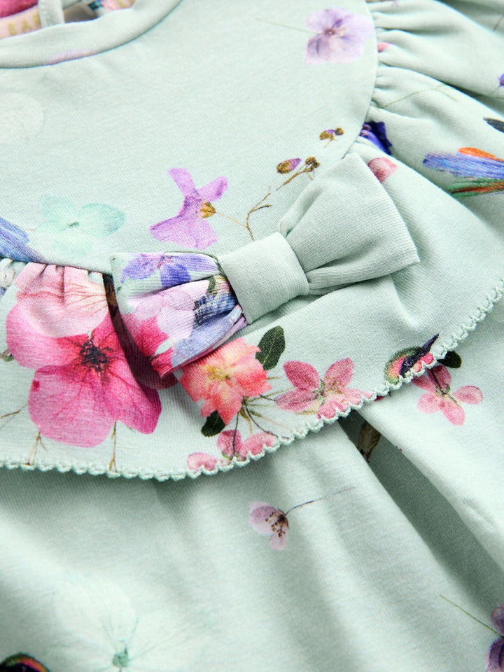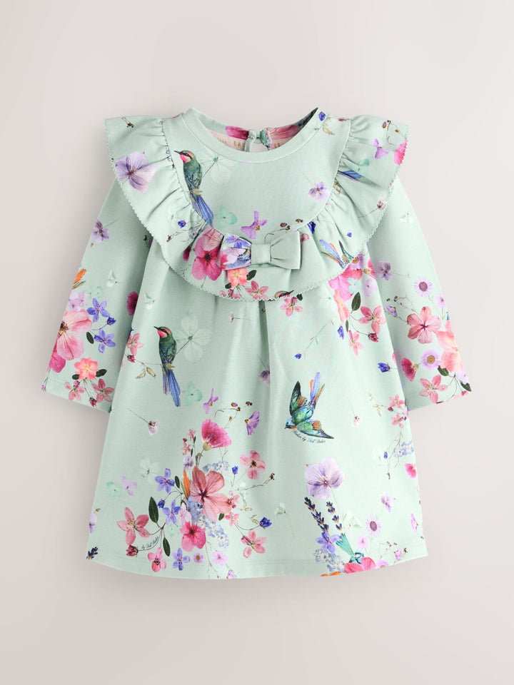 Dress her up in this adorable frill detail jersey dress from Baker by Ted Baker. This cute piece features all over floral design, with frilled details at the shoulders. For closure it has a keyhole opening at the back with a Baker branded button. Pair with our baby socks and padders to complete her outfit! 92% Cotton, 8% Elastane. Country of Origin: Bangladesh