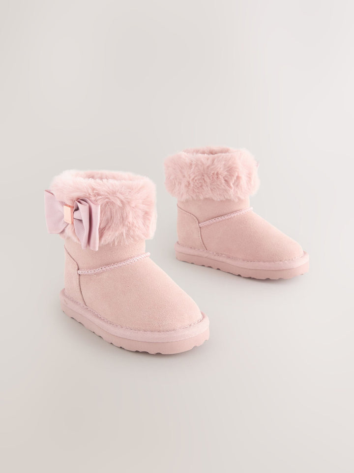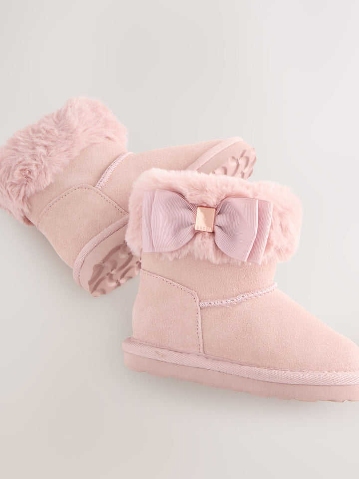 Keep her toes toasty and stylish with the Baker by Ted Baker Girls Faux Fur Cuff Boot Slippers with Bow. These charming slipper boots are a cold-weather essential, crafted with a soft suede upper and a luxurious faux fur trim and lining for ultimate warmth and comfort. Adorable pretty bow details on the sides add a sweet touch, while gold Baker branding provides that signature designer finish. Perfect for cosy evenings at home, they also make a wonderful gift. Suede upper Faux fur trim Pretty bow detail Gold Baker branding Great for gifting Upper - Leather, Textile, Lining and Sock - Textile, Sole - Other Materials. Country of Origin: China