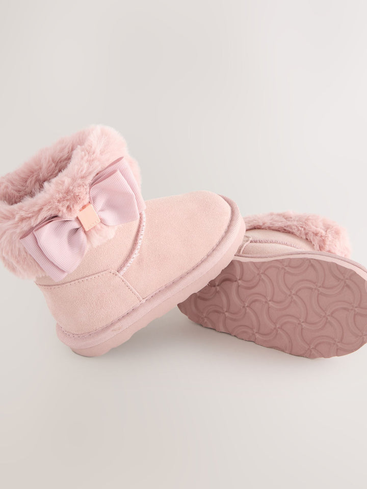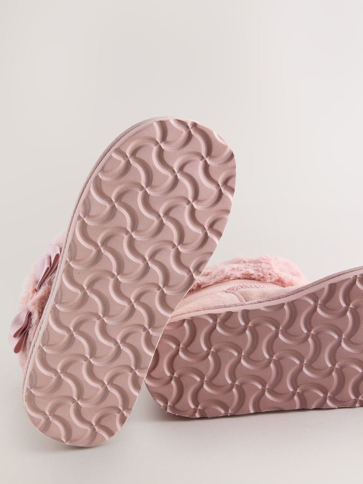 Baker by Ted Baker Girls Faux Fur Cuff Boot Slippers with Bow