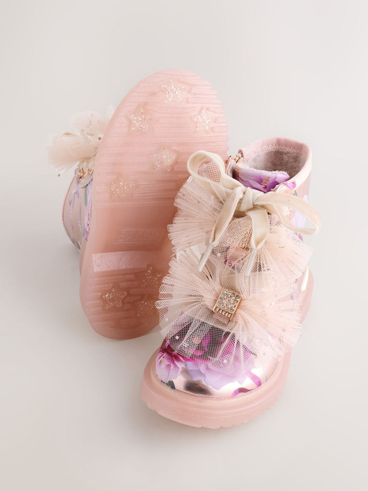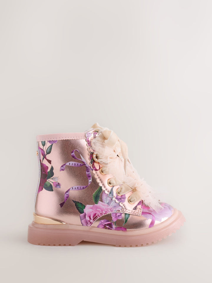 Baker by Ted Baker Girls Floral Print Lace Up Boots with Bow