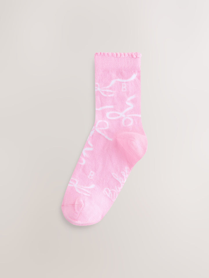 Fill her sock drawer with sweetness with the Baker by Ted Baker Multi Bow Socks 3 Pack. This charming set features three pairs of ankle socks in adorable colourways, including two different shades of pink and one white pair. Each sock is adorned with a delicate, all-over print featuring a feminine bow motif and the iconic Baker initial. Finished with a pretty scalloped edge along the cuff, these soft, comfortable socks add a perfect touch of signature style to any outfit. 3 pack Baker initial and bow print Scalloped edge 70% Cotton, 28% Nylon, 2% Elastane. Country of Origin: Turkey