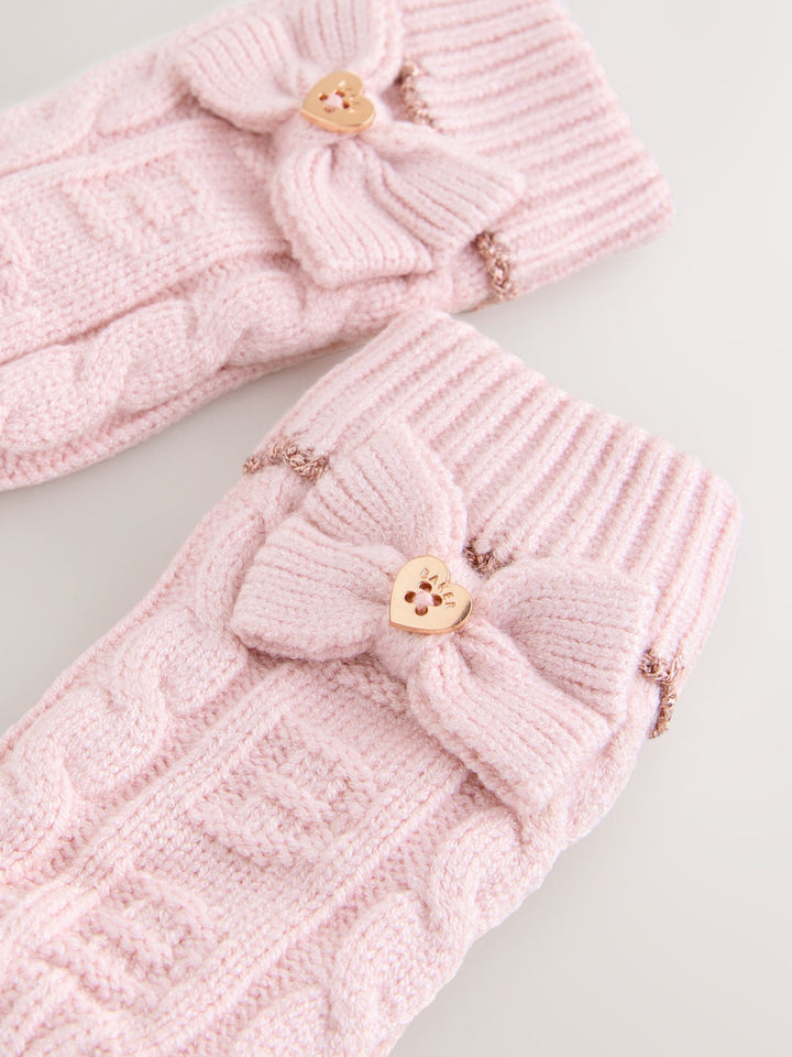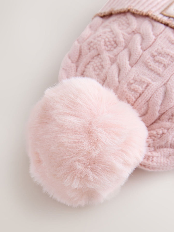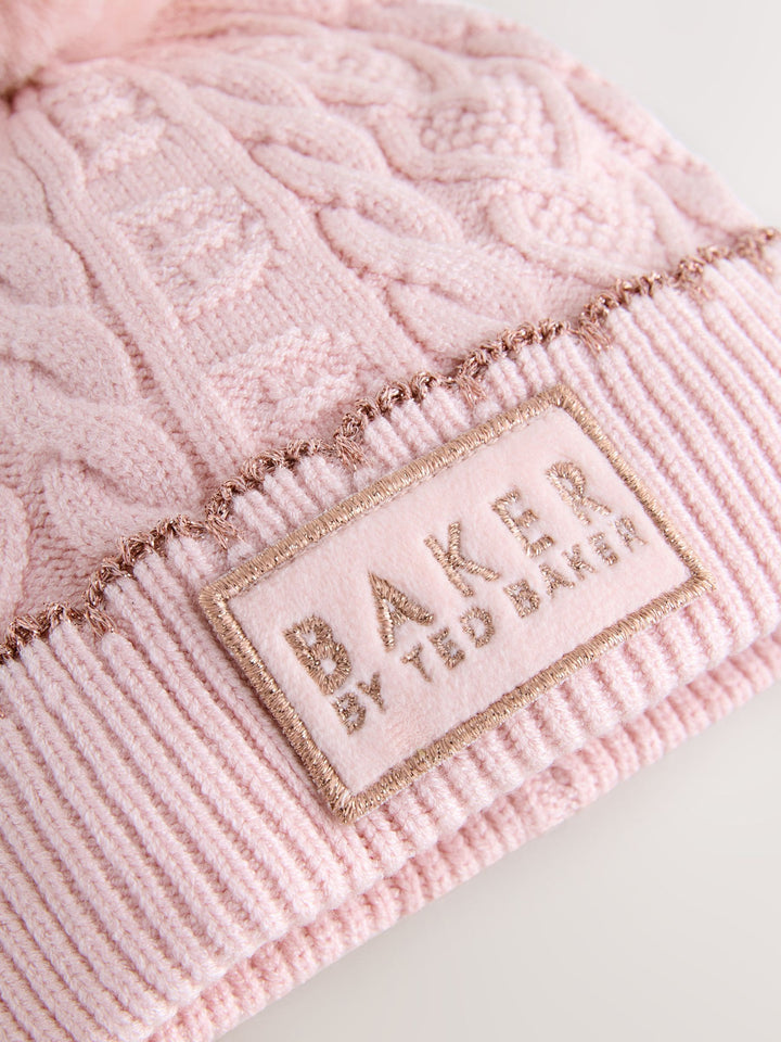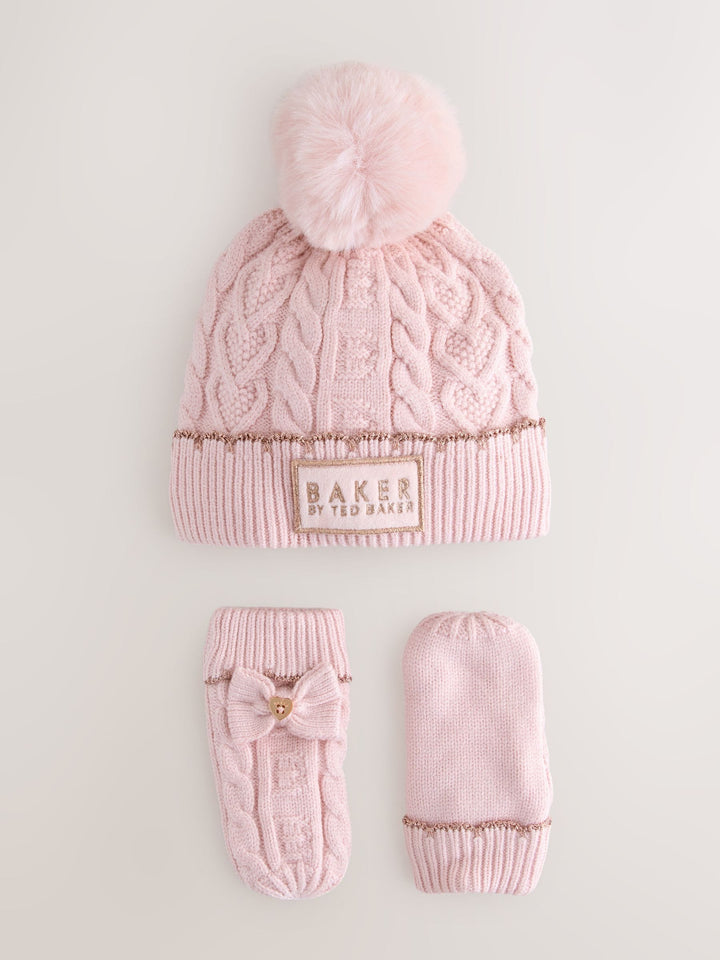 Baker by Ted Baker Girls Pink Cable Knit Beanie and Mittens Set