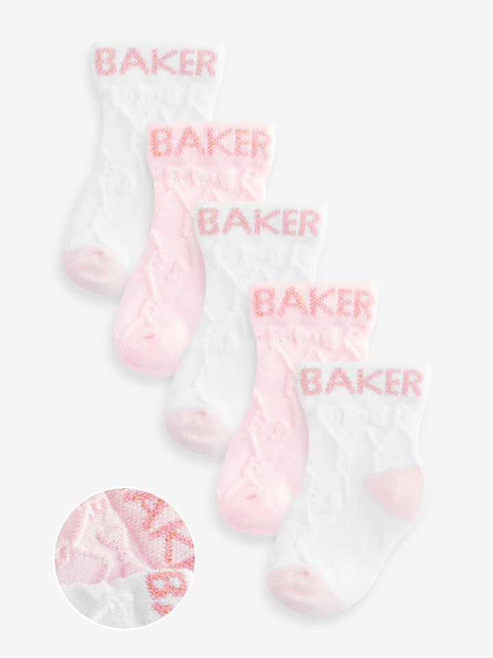 Keep little feet feeling warm and cosy with these cute Baker by Ted Baker socks. These 5 pack socks are soft and perfect for everyday, a necessary essential to have in their drawer. 5 pack Soft cotton fabric Baker branding BI-OME® NTL odour control technology:BI-OME® NTL is a new, bio-based, non-harmful odour control technology which guarantees an optimal freshness and hygiene for all kinds of textiles. The active ingredient is linseed oil, which is derived from the seeds of the flax plant. This product is applied for sizes 6-8.5 upwards. 76% Cotton, 21% Nylon, 2% Elastane, 1% Metallised fibre. Country of Origin: Turkey