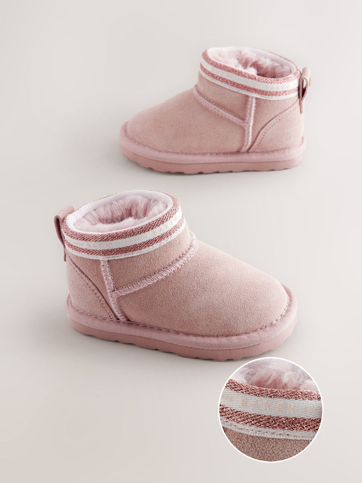 Baker by Ted Baker Girls Water Repellent Cosy Suede Branded Tape Boots