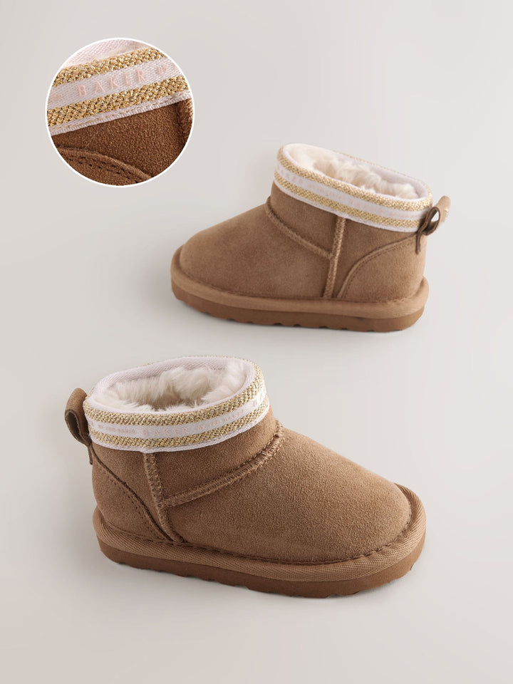Baker by Ted Baker Girls Water Repellent Cosy Suede Branded Tape Boots