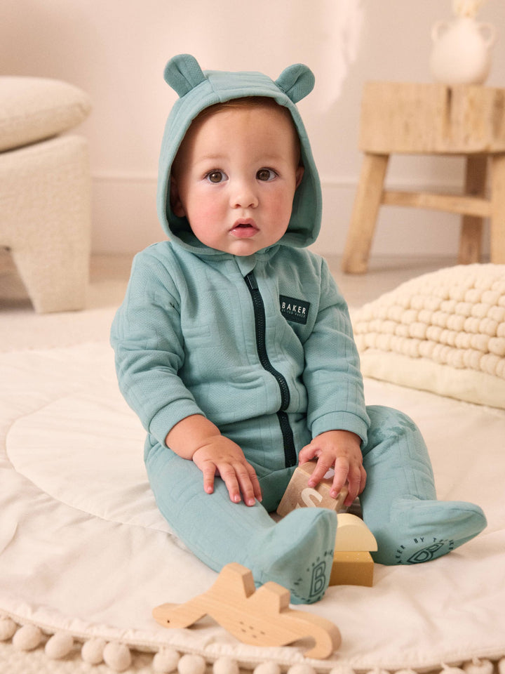 Perfect for keeping little ones cosy, this all-over textured all-in-one features a full-length zip with a branded puller and an adorable hood with ear details. Branded badges on the chest and feet add a stylish touch. This item comes without feet from 12-18m+. All-over textured material Zip-up front fastening with branded zip puller Hood with ear details Branded badge on the chest Comes without feet from 12-18m+ Main 77% Cotton, 23% Polyester. Lining 100% Cotton. Country of Origin: China