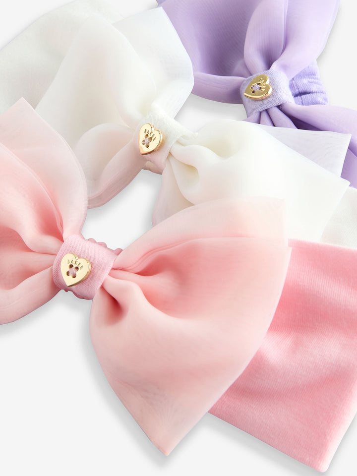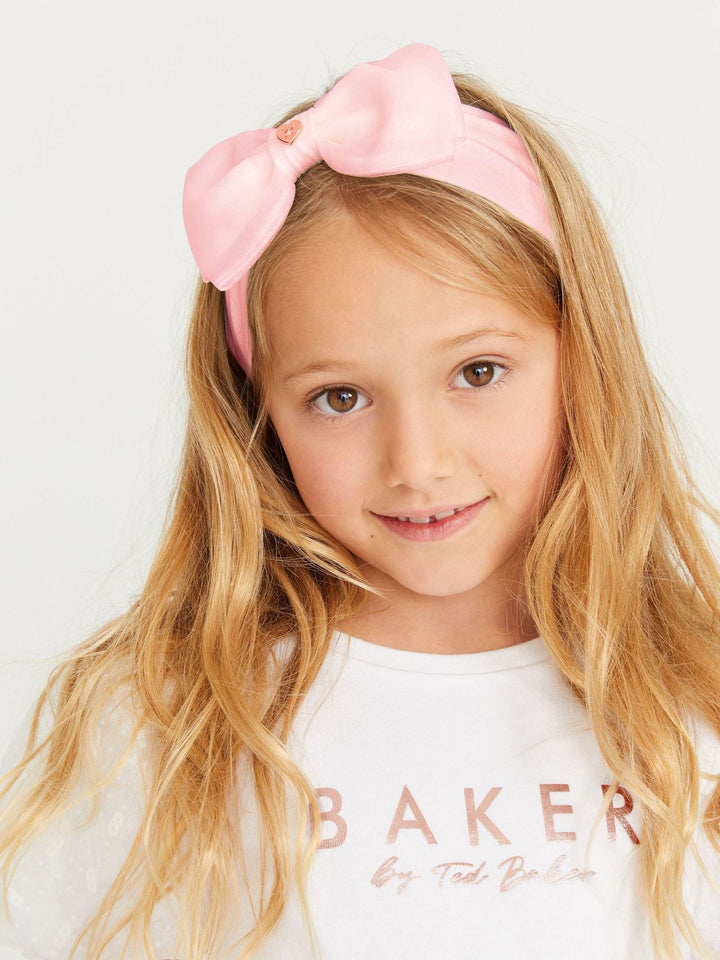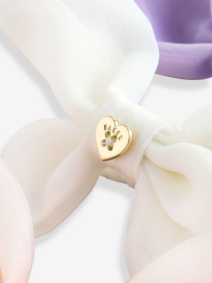 Add the finishing touch to your little one's look with these cute headbands from Baker by Ted Baker. Part of a 3 pack, colourways include pink, purple and white, each with an elasticated back for comfort and an adorable organza bow to the front. They are finished with a gold tone heart with Baker branding in the centre of each bow. 3 pack Bow detail Elasticated back for comfort Suitable for children aged 3+ due to small parts Main 96% Polyester, 4% Elastane. Bow 60% Polyester, 40% Nylon. Country of Origin: China