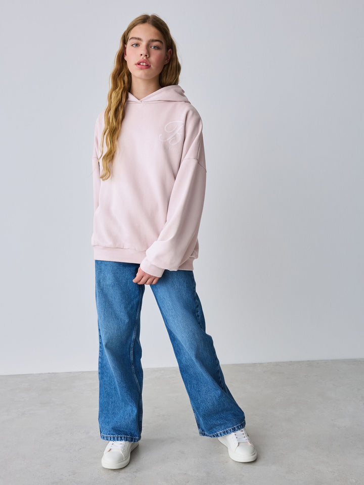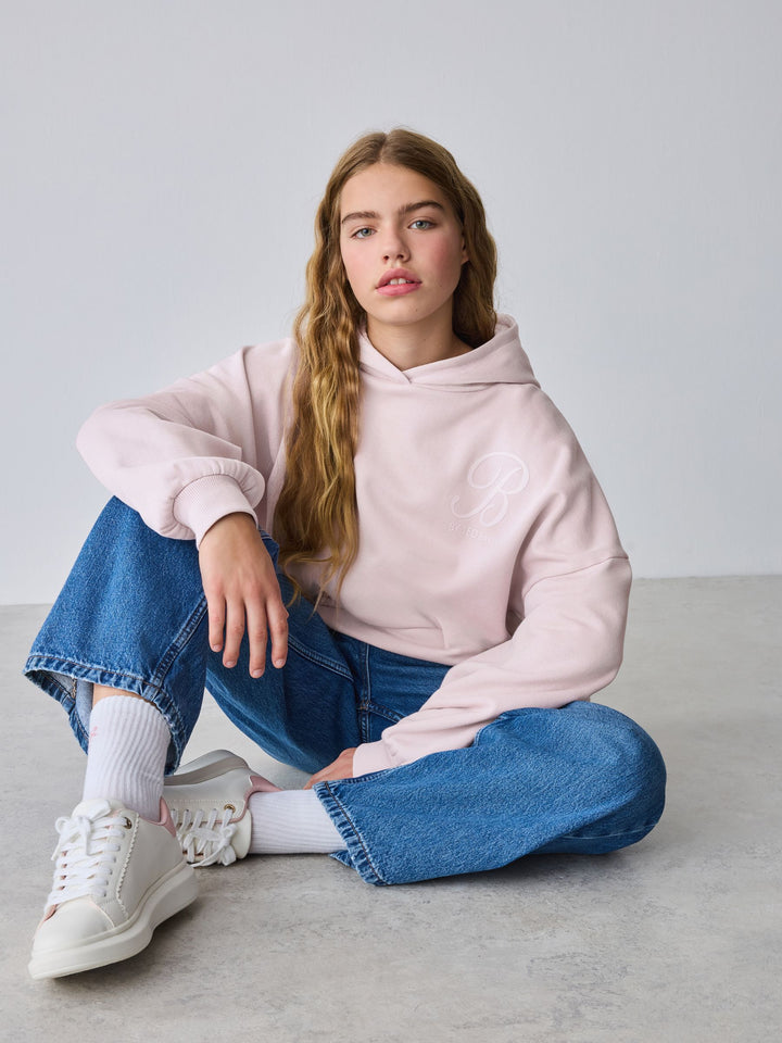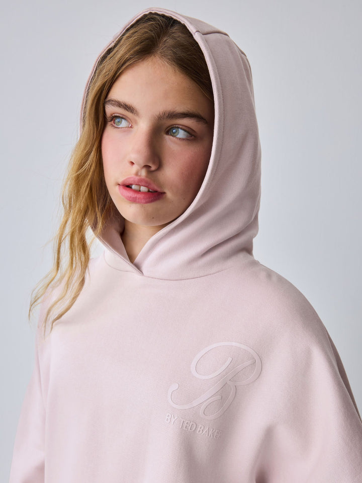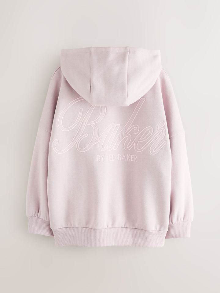 Baker by Ted Baker Oversized Satin Appliqué Back Print Pink/White Hoodie