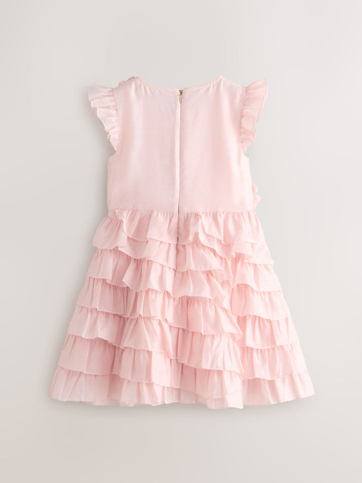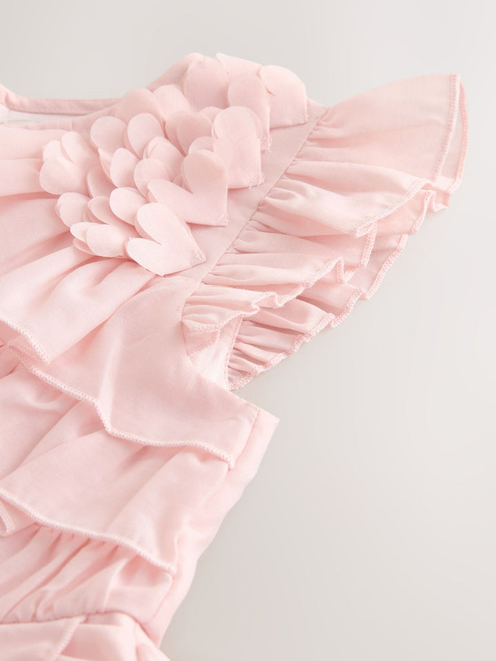 Show her off in delicate, timeless beauty with this 3D floral ruffle Dress from Baker by Ted Baker. Crafted in a luscious blush pink hue, this piece is an absolute showstopper. The bodice and skirt feature an exquisite design of cascading ruffles that create breathtaking texture and movement with every step. Finished with intricate three-dimensional floral appliqué details at the shoulder and the waistline. Perfect for weddings, formal portraits, and any grand affair. Shell 100% Polyester. Lining 100% Polyester. Country of Origin: India