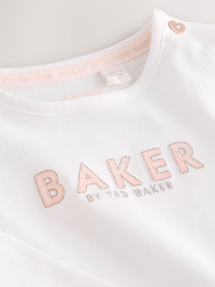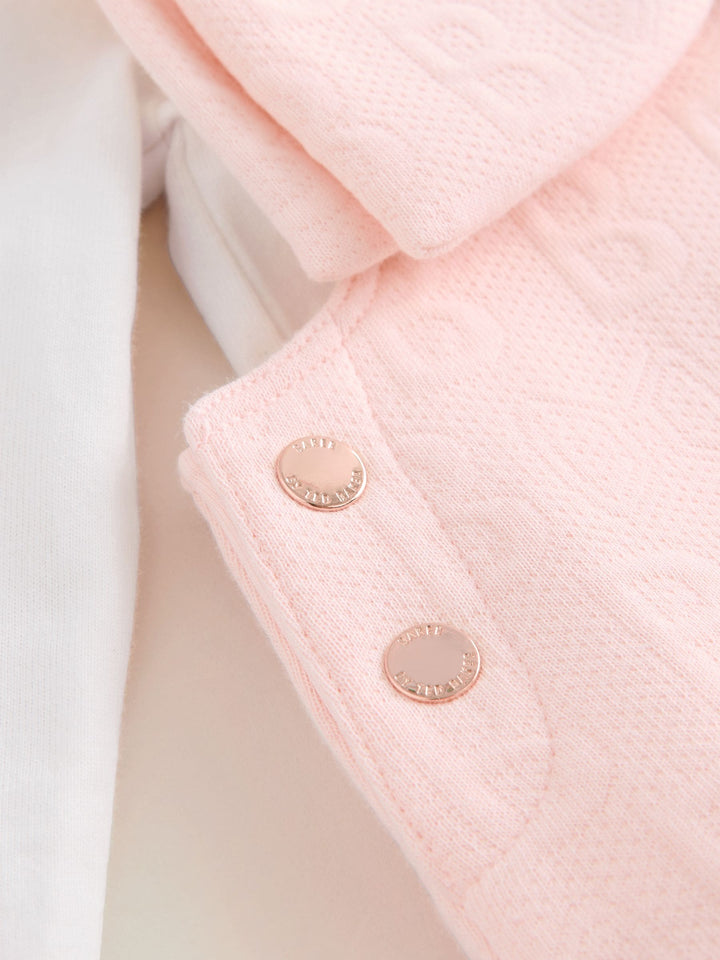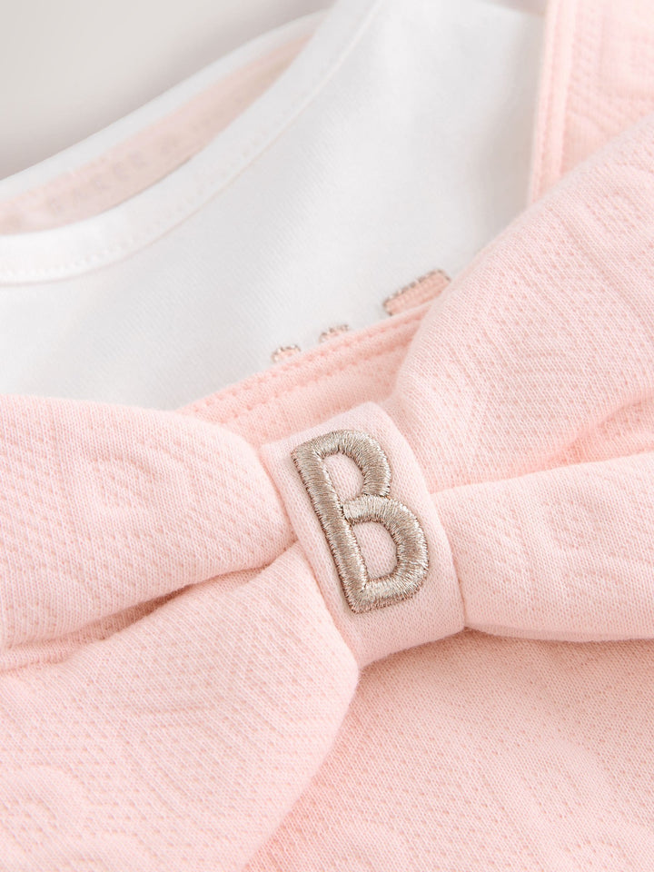 Baker by Ted Baker Pink Jacquard Bow Dungarees & T-Shirt Set
