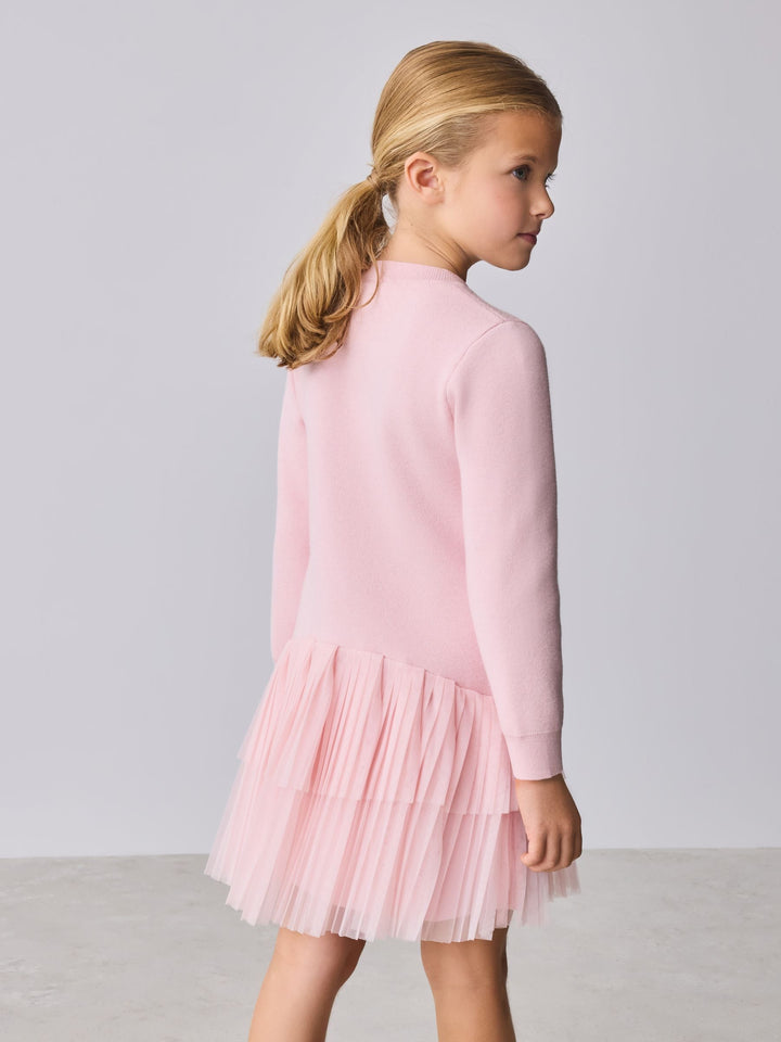 Baker by Ted Baker Pink Knitted Mesh Tulle Hem Dress