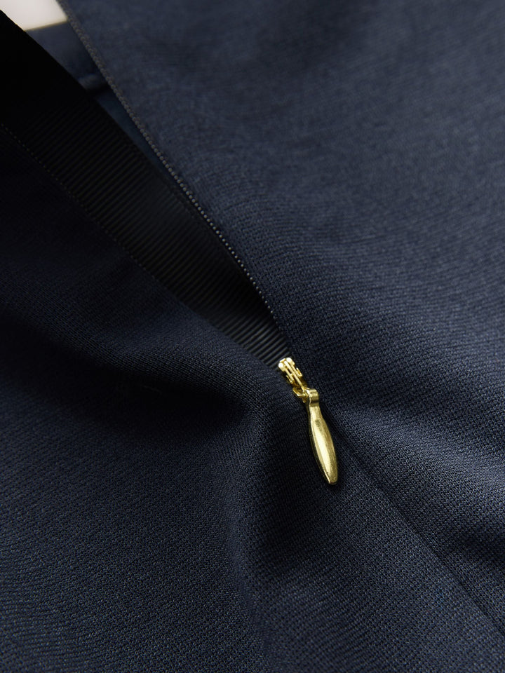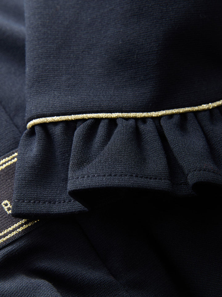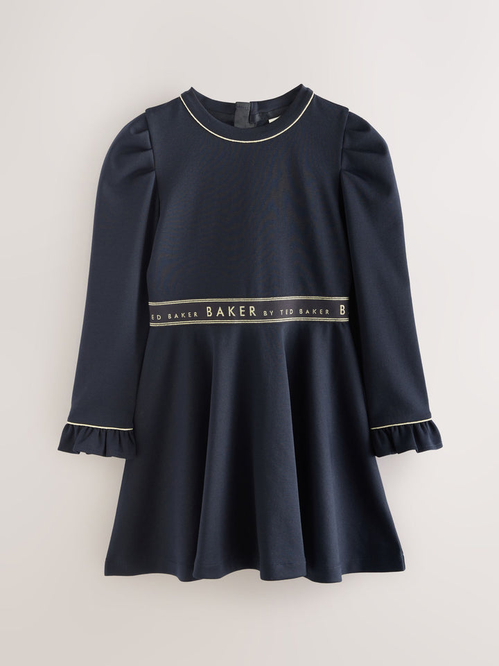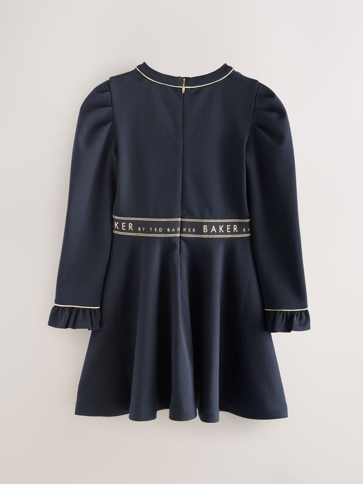 Formal with style, you'll love her in this beautiful ponte dress from Baker by Ted Baker. Made from a soft ponte fabric, this dress is designed with gold lurex piping on the collar edge and cuffs, not to mention our iconic Baker branded gold waistband. Finishing touches include pale gold Baker branded hardware and a zip at the back. The perfect dress for any formal occasion. 96% Polyester, 4% Elastane. Country of Origin: China