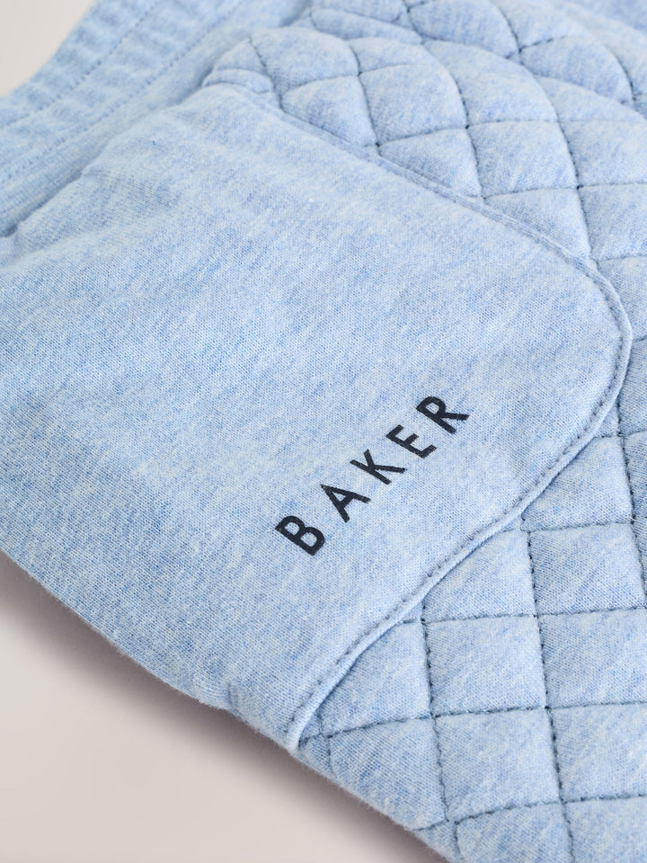 Dress your little one in cosy comfort with the Baker by Ted Baker Quilted Jacket, T-Shirt and Trousers Set. This adorable blue quilted 3-piece set is perfect for cooler days. The quilted jacket features a snuggly borg-lined hood with playful ears and subtle BAKER branding. It's paired with a simple branded t-shirt and matching blue quilted trousers to complete the coordinated look. 3 piece set Quilted design Baker branding Ears on hood Jacket Main 100% Cotton. Lining 100% Cotton. Artificial Fur 100% Polyester. Wadding 100% Polyester. T-shirt 100% Cotton. Jogger Main 100% Cotton. Lining 100% Cotton. Wadding 100% Polyester. Country of Origin: China