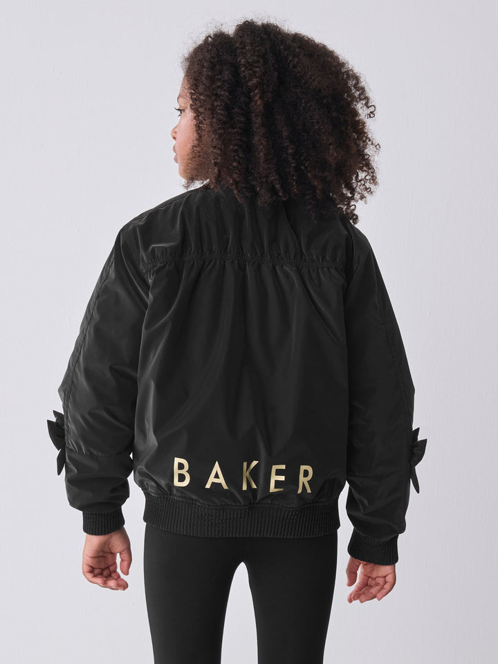 Baker by Ted Baker Shower Resistant Bow Bomber Black Jacket
