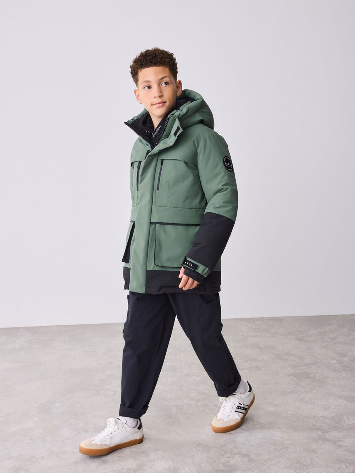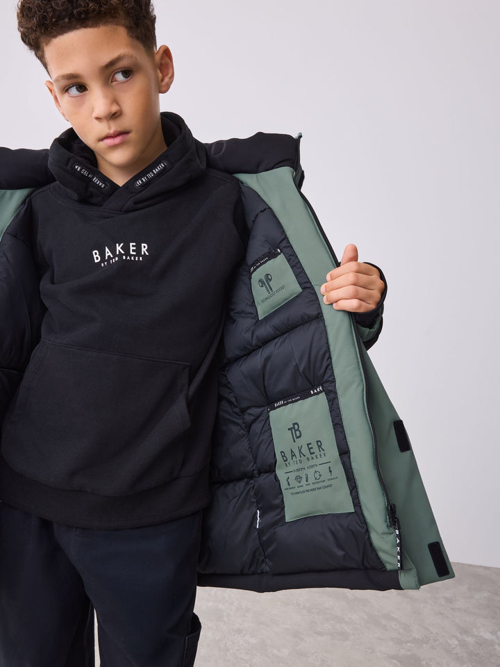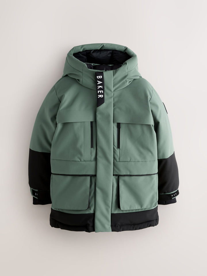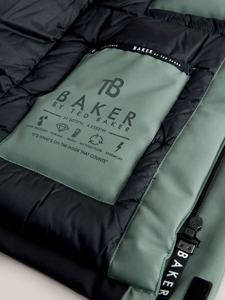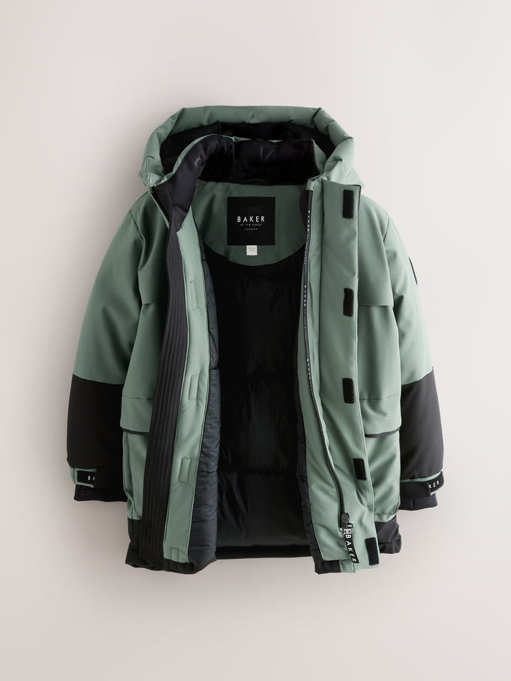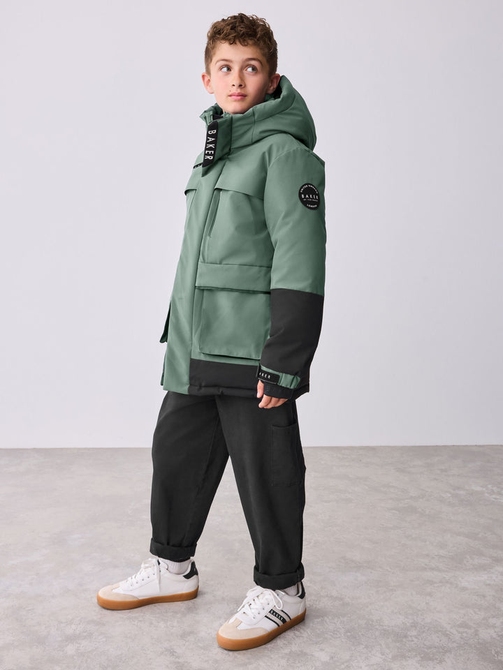 Gear up for any adventure with the Baker by Ted Baker Shower Resistant Colourblock Parka Coat. This stylish parka features a modern colourblock design and is crafted to be both warm and durable. It is also shower resistant, keeping him dry in the rain. The coat is loaded with signature Baker by Ted Baker details, including bold branding on the placket, front pockets with branded zip pullers and a branded badge on the arm. For a snug fit, it has branded storm cuffs with branded touch-and-close fastenings on the wrists. Inside, you'll find a handy technology pocket and a large inner pocket for storage. The back of the coat is finished with a prominent branded badge, ensuring they stand out from every angle. Colourblock design Baker branding detail Inside technology pocket Shell 100% Polyester. Body Lining 100% Nylon. Sleeve Lining 100% Polyester. Cuffs 94% Polyester, 6% Elastane. Wadding 100% Polyester. Country of Origin: China