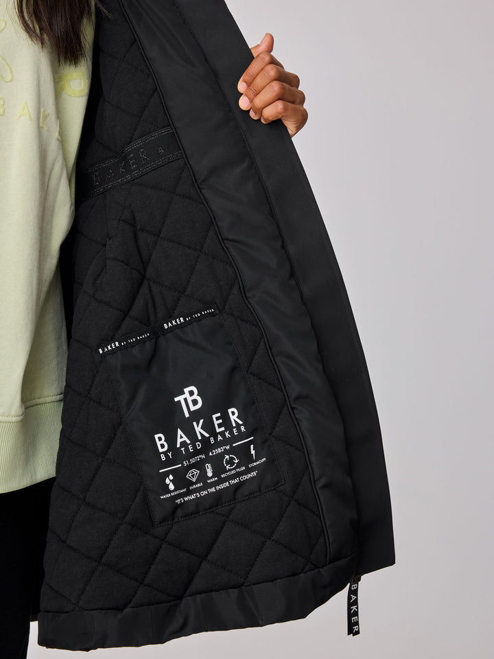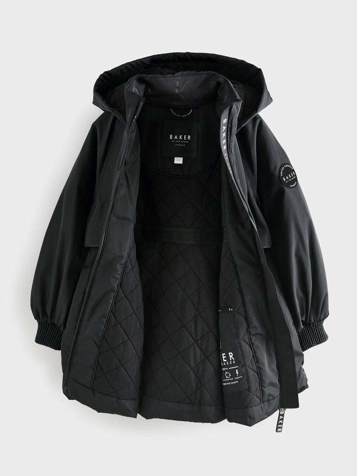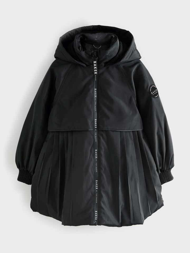 Banish those rainy days in style with this stylish pleated rain mac from Baker by Ted Baker. The raincoat cuts a stunning silhouette with an elegant pleated design all around. Not only is this coat fashionable, but its also functional for rainy days with shower resistant properties, internal quilted padding and functional hood. Branded features include a rubberised central zip fastening with a branded zip puller, printed branding along the back storm panel and a Baker badge on the arm. Details include a branded lurex internal tape, ruched cuffs and an internal pocket. This unique raincoat will be a versatile addition to her wardrobe. Shell 100% Polyester. Body Lining 100% Cotton. Sleeve Lining 100% Polyester. Wadding 100% Polyester. Country of Origin: China Shower resistant, water repellent finish to provide protection against light rain.