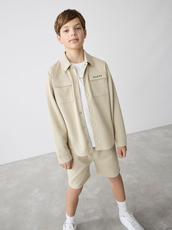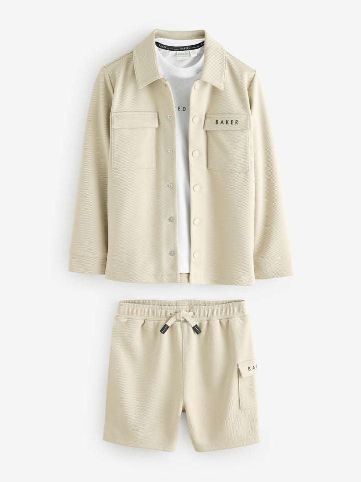 Baker by Ted Baker Stone Shacket T-Shirt And Shorts Set